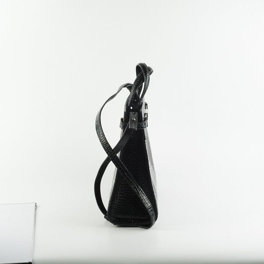 Saint Laurent Manhattan Shopper Embossed Croc Tote Black