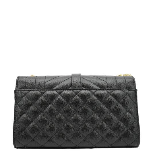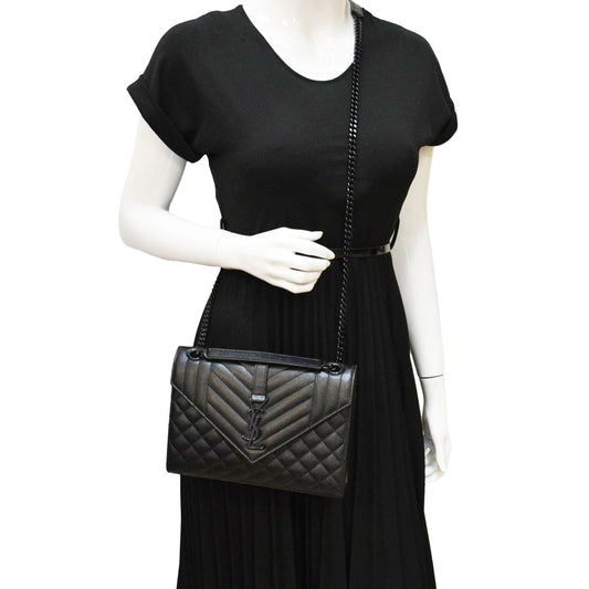 YVES SAINT LAURENT Envelope Medium Mixed Matelasse Leather Shoulder Bag Black