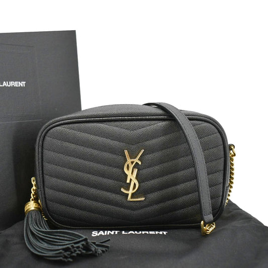 YVES SAINT LAURENT Lou Mini Chevron Leather Camera Crossbody Bag Black