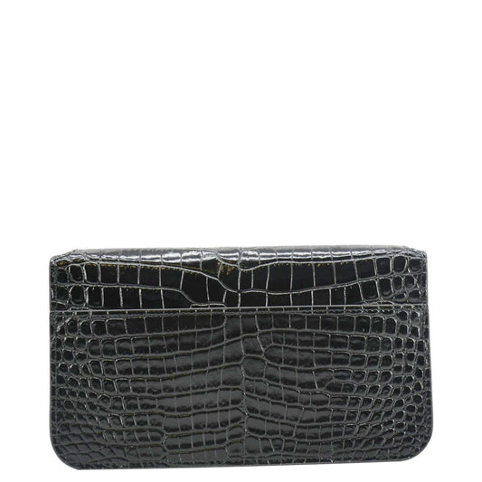 YVES SAINT LAURENT Monogram Crocodile Embossed Leather Phone Holder Black