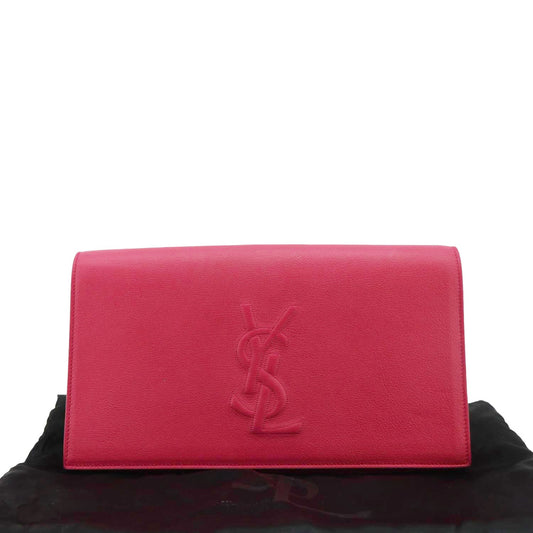 YVES SAINT LAURENT Belle de Jour Leather Clutch Bag Fuchsia