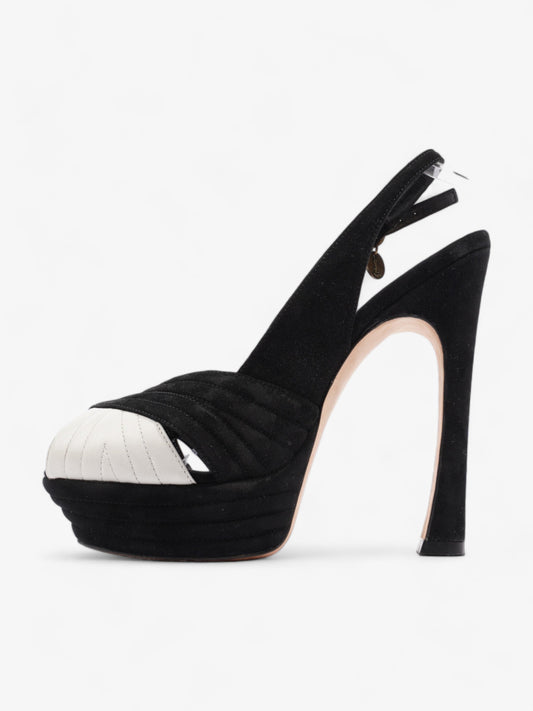 Saint Laurent Quilted Slingback Platform Heels 110mm Black / White Suede EU 38 UK 5