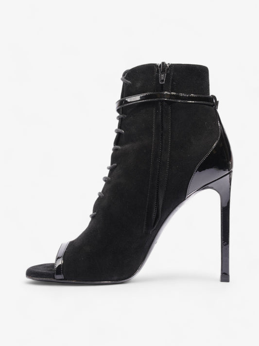 Saint Laurent Peep Toe Lace Up Boot 110 Black Suede EU 37 UK 4