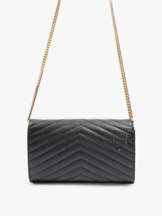 Saint Laurent Cassandra Chain Wallet Black Calfskin Leather