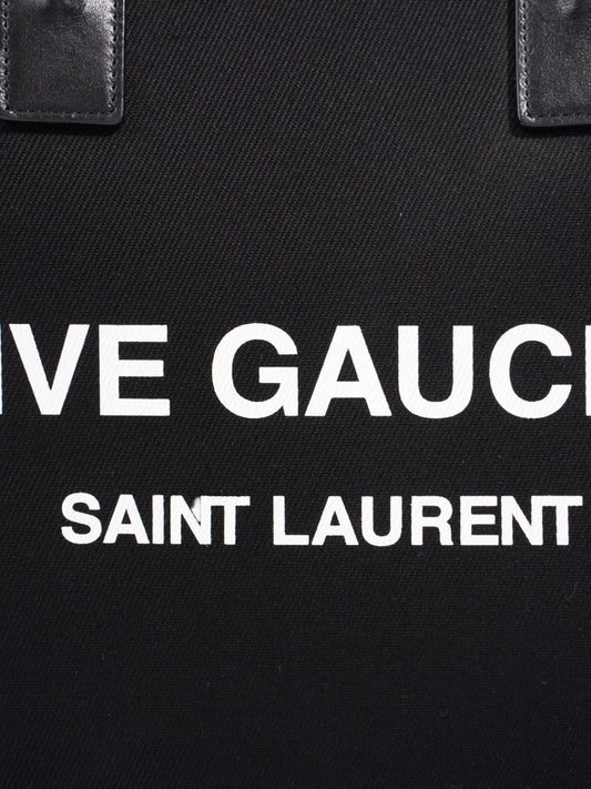 Saint Laurent Rive Gauche Tote Bag Black / White Canvas