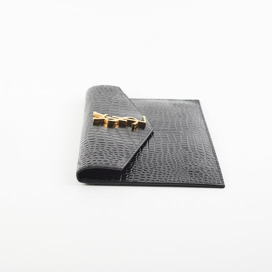 Saint Laurent Uptown Crocodile Embossed Leather Black