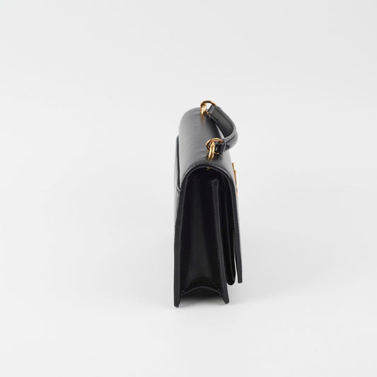 Saint Laurent Black Patent YSL Gold Enamel Buckle Belt