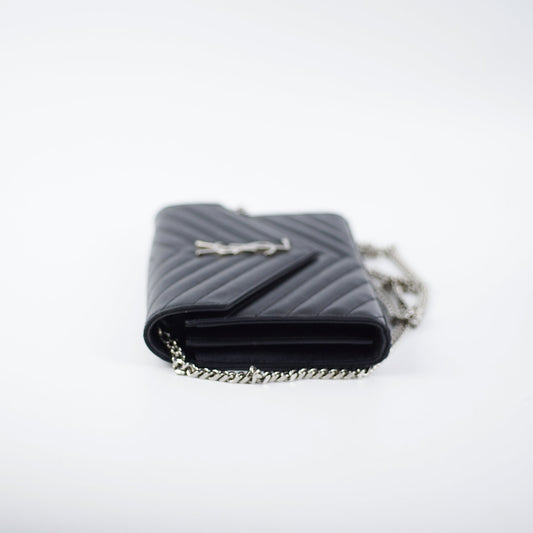 Saint Laurent Sunset Black Chain Wallet In Smooth Leather