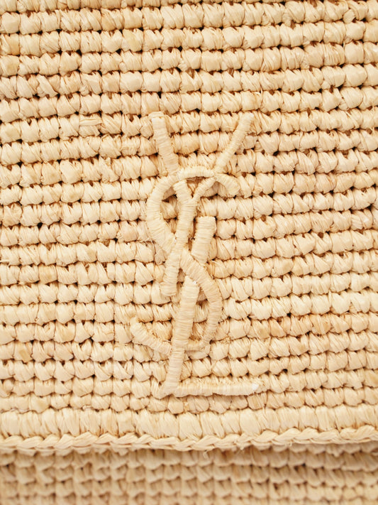 Saint Laurent Raffia Round Crossbody Bag Brown / Straw Straw, Leather