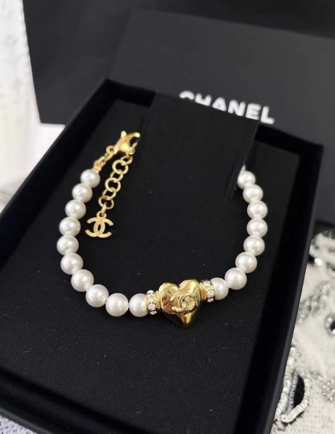 Chanel pearl gold heart diamond bracelet, brand new with box