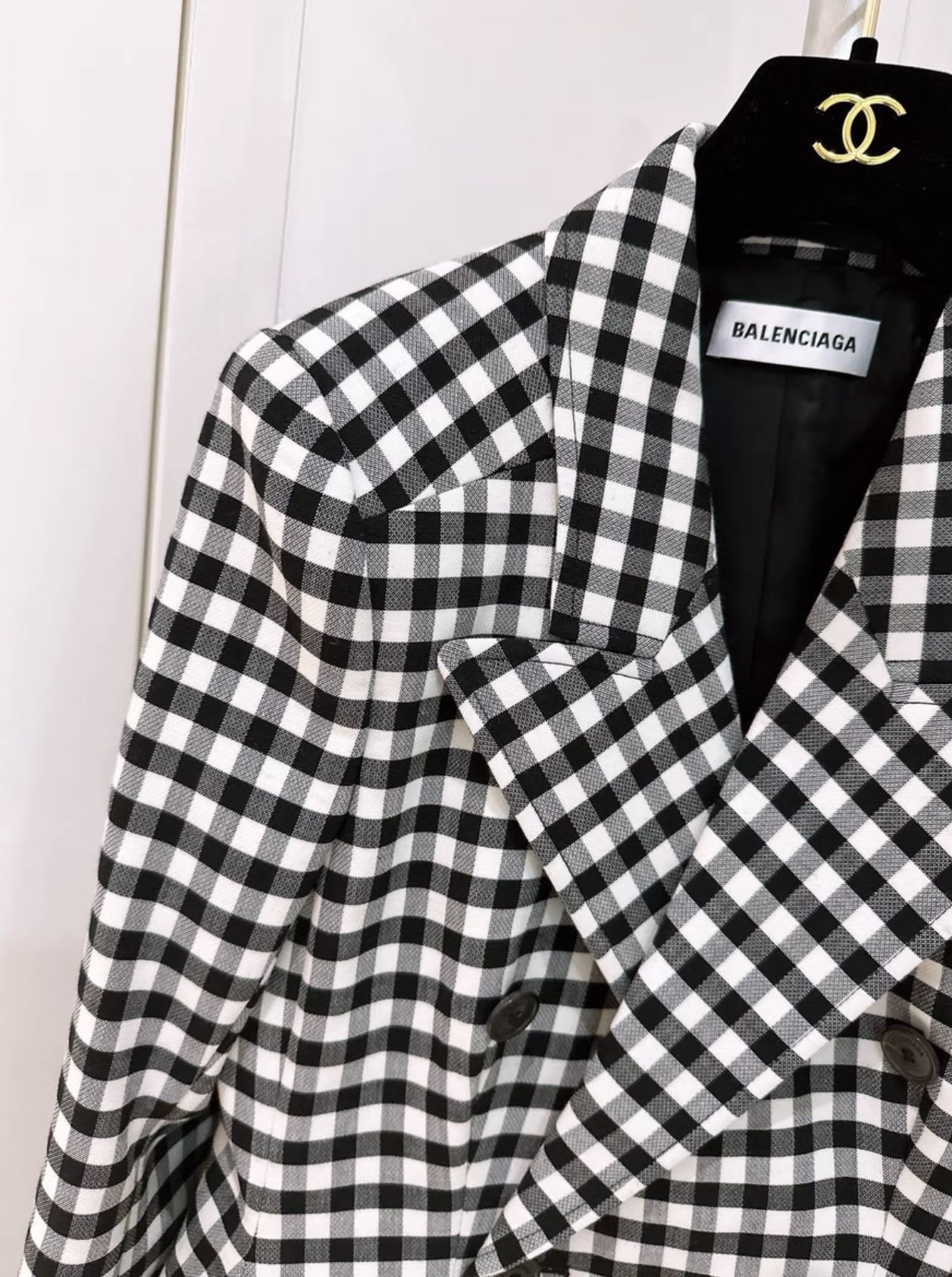 Balenciaga black and white grid hourglass coat