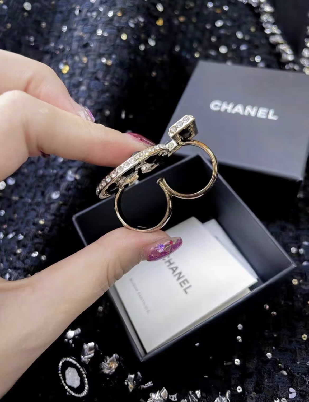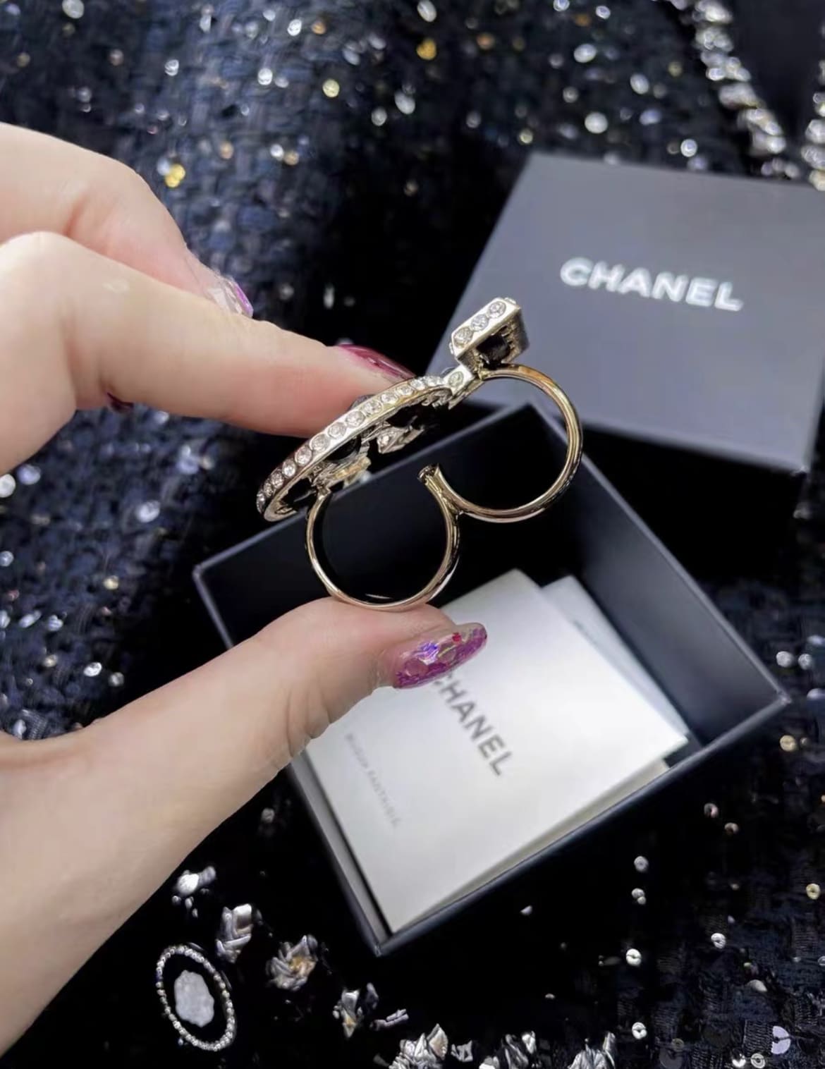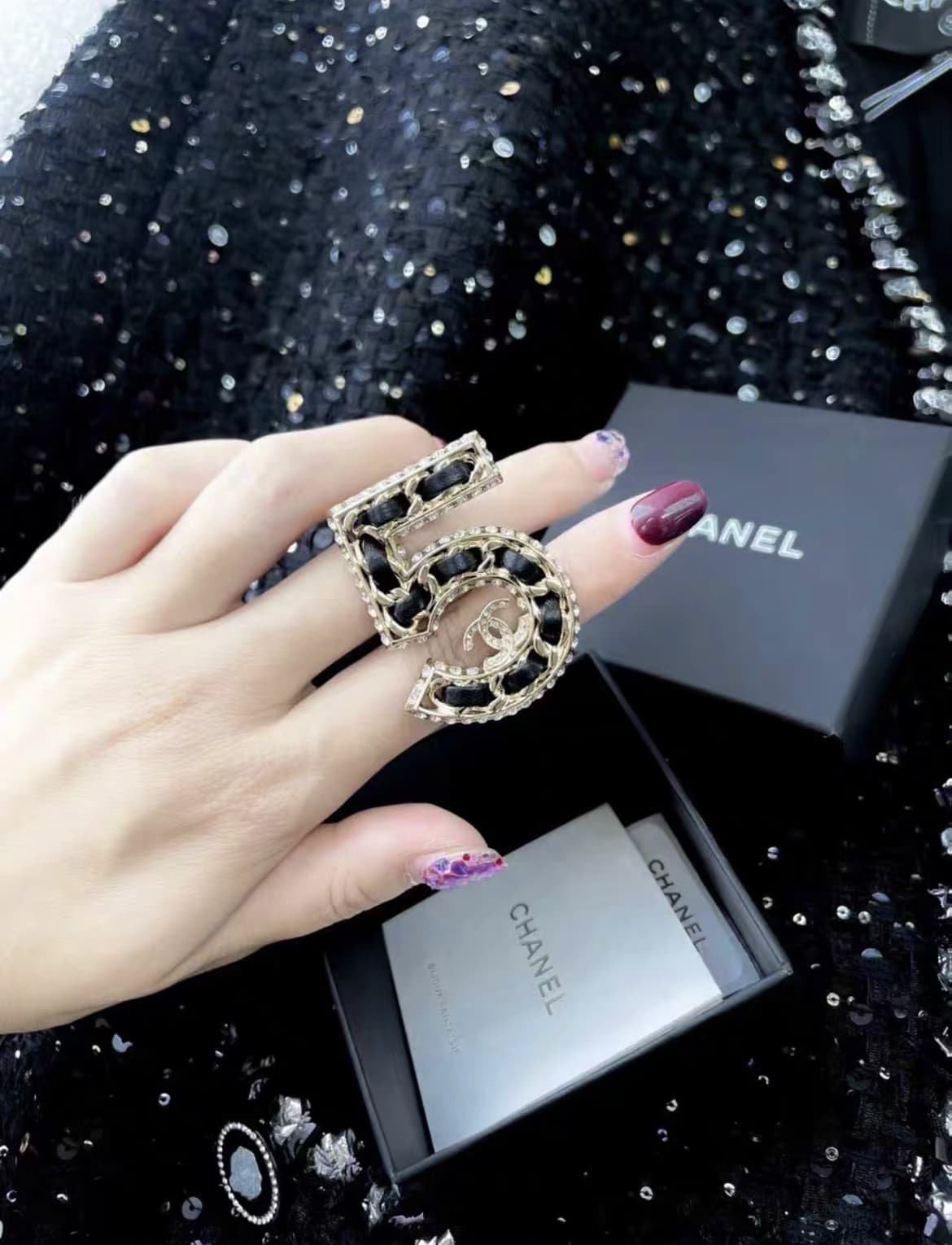 Chanel leather and metal number 5 ring, basically new, finger size 51-54, worn once