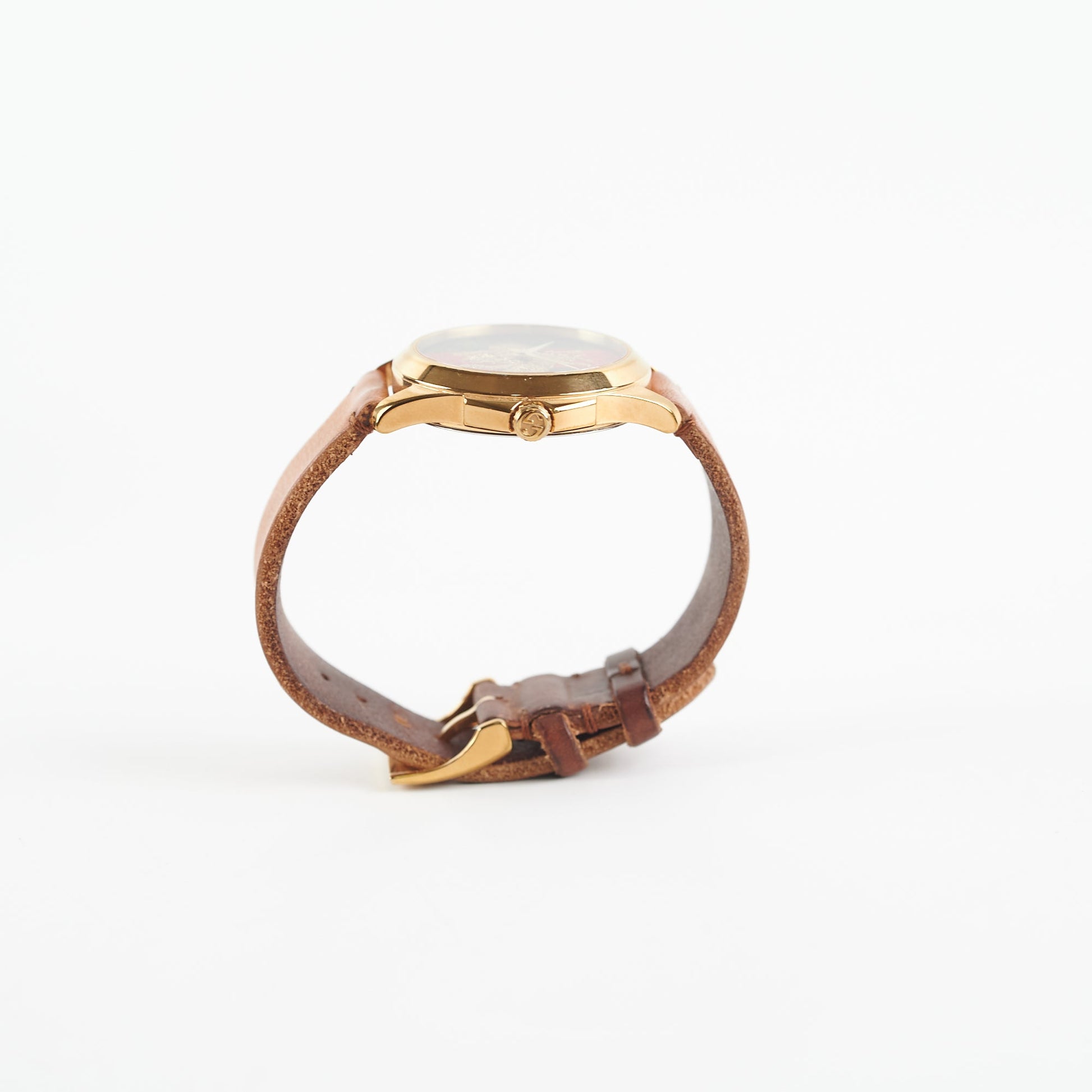 Condition: 8/10 Good Condition - Leather darken, hairline scratches and tarnishing on hardware