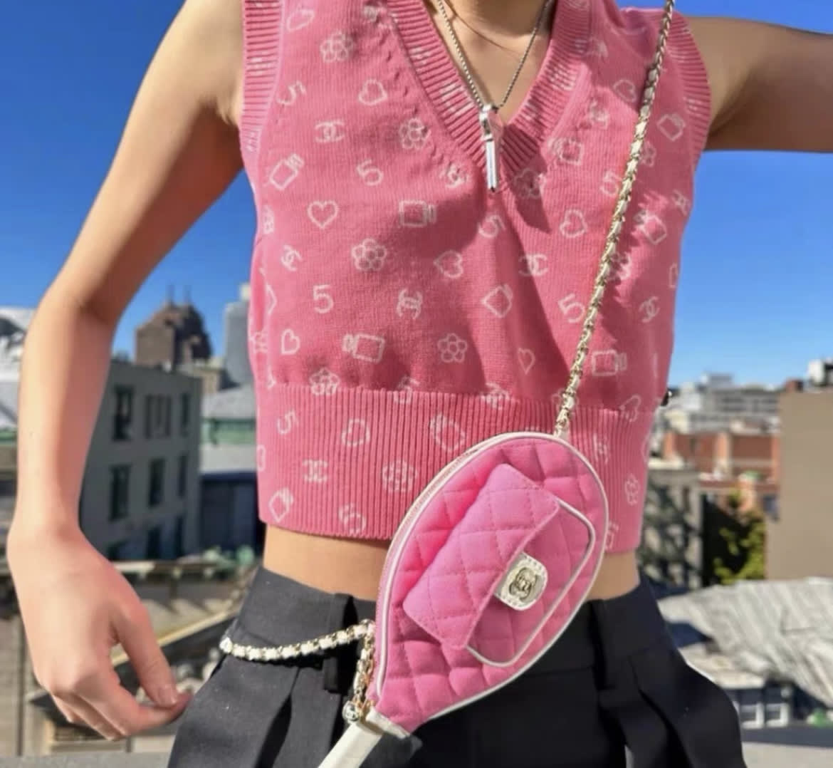 Chanel 23 early spring love pink knitted vest,