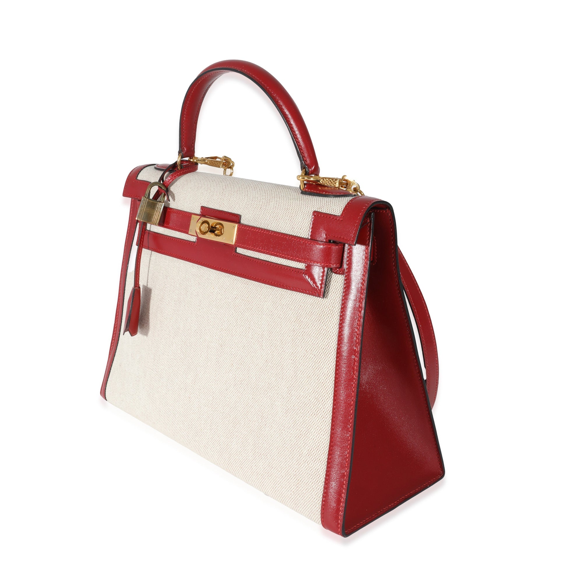 Hermes Kelly 32 Vintage Rouge Box Natural Toile Sellier