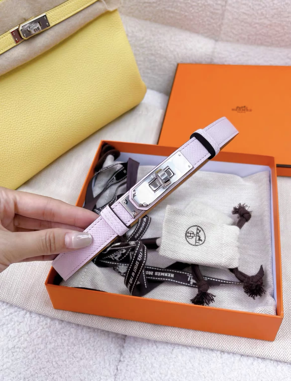 Hermès Kelly 18 Belt Mauve Pale Epsom Palladium Hardware