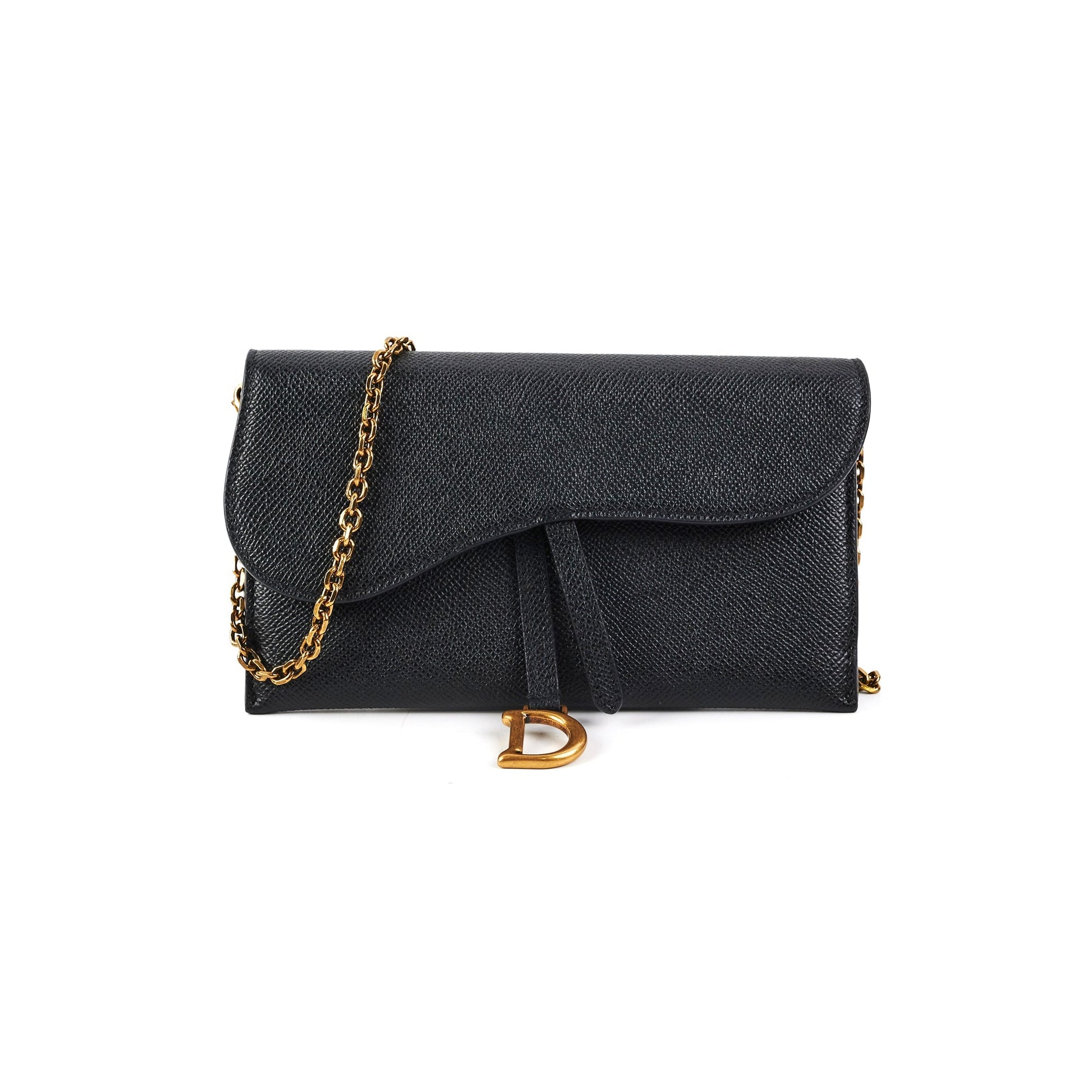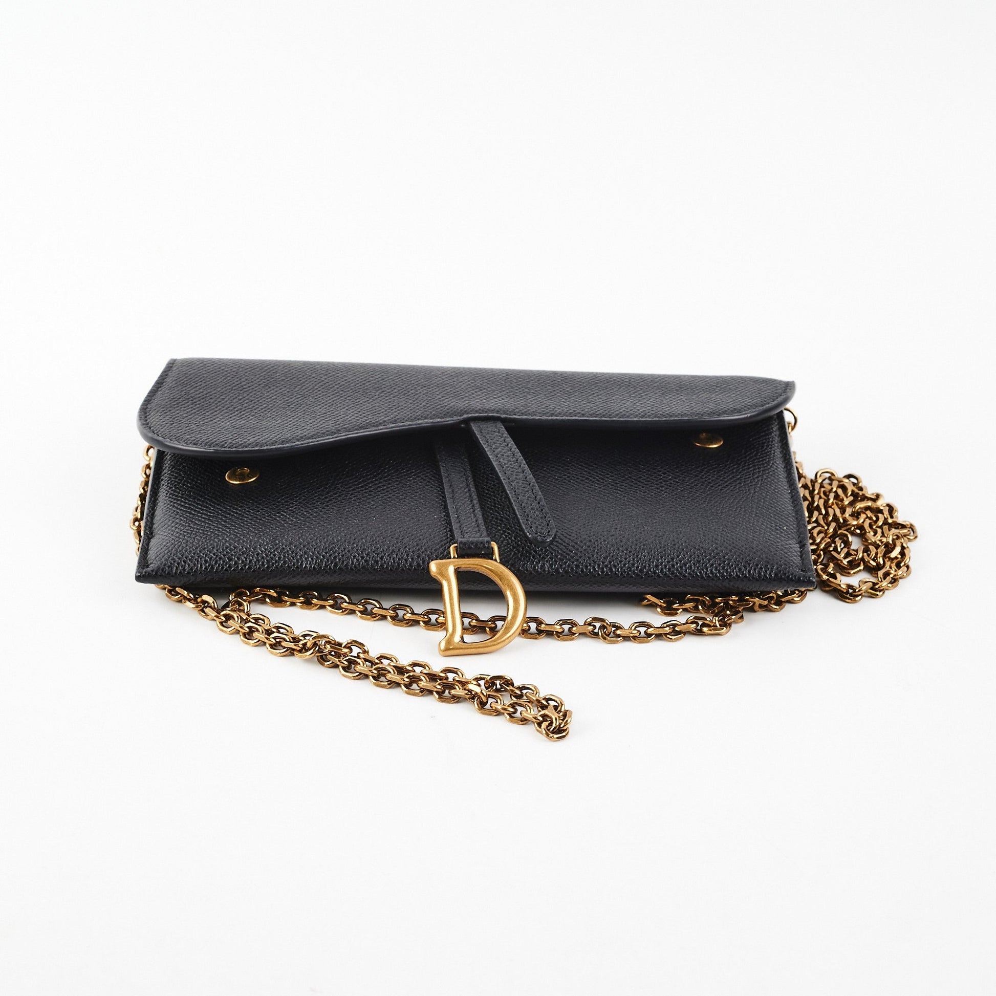 Dior Long Saddle Black Wallet On Chain WOC Crossbody Bag