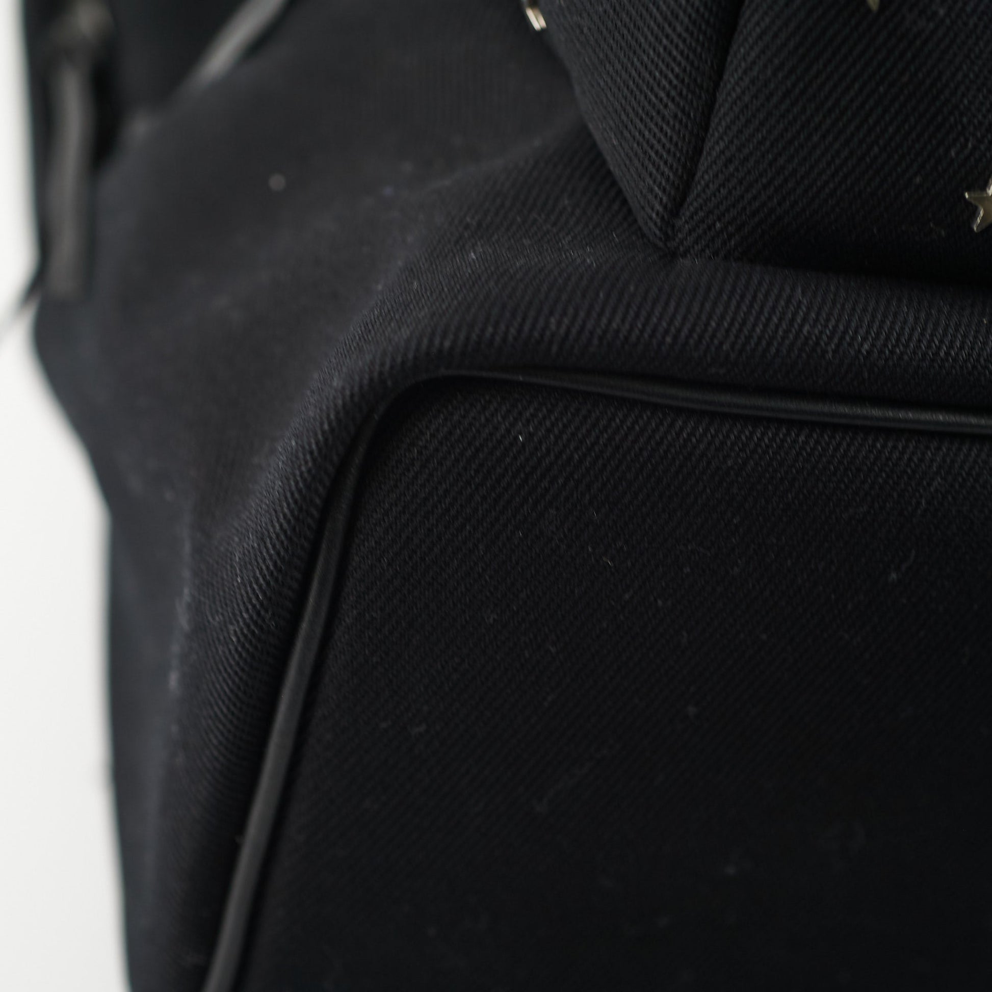 Condition: 9.3/10 Excellent Condition - light hairline scratches and tarnishing on hardware, light stains on outer and inner fabric