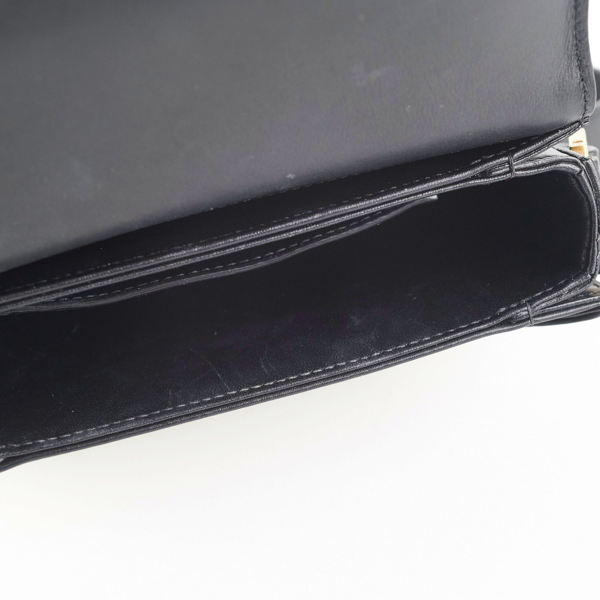 Condition: 9.3/10 Excellent Condition - light hairline scratches and minor tarnishing on hardware, light nail marks under flap, light indent on back, light creasing on strap