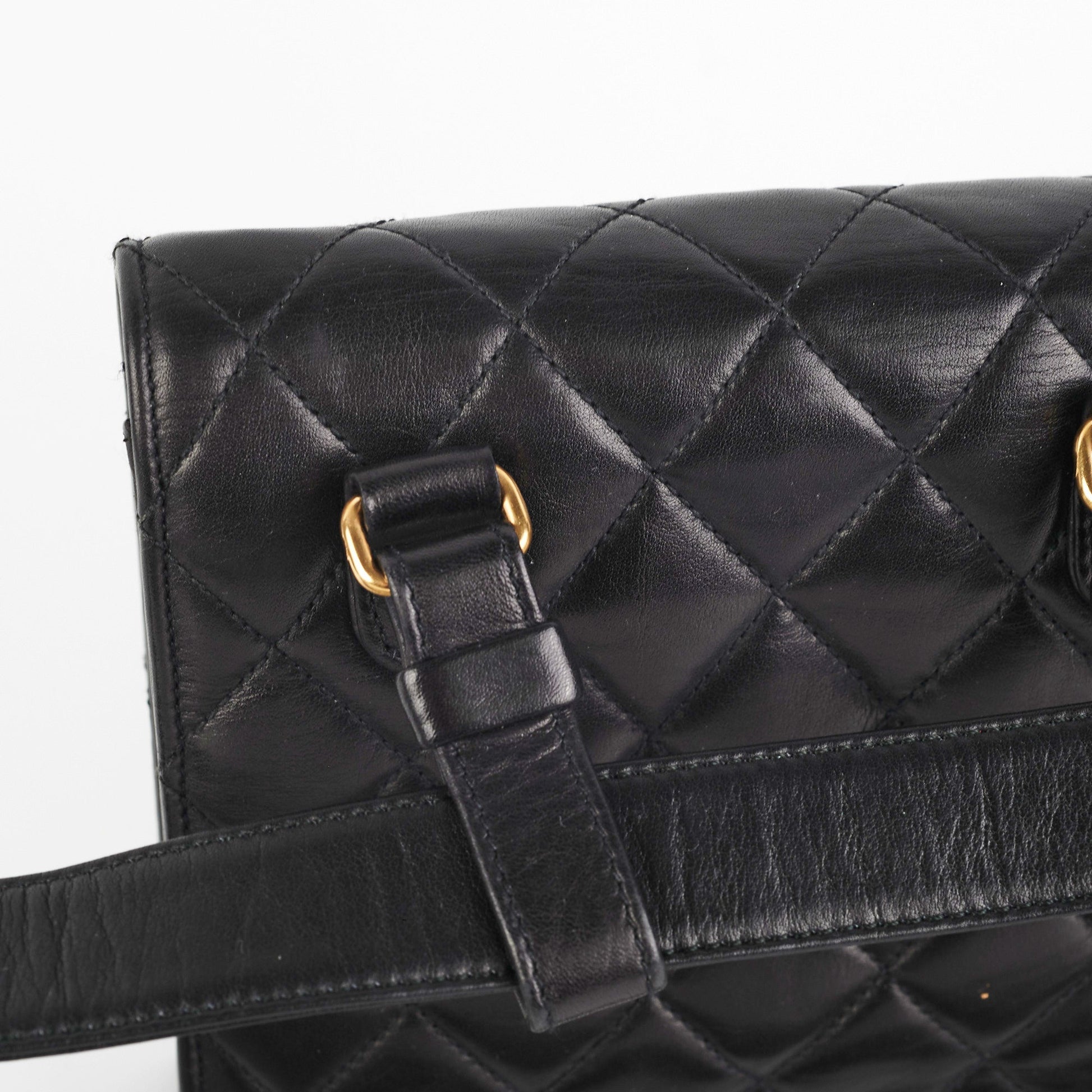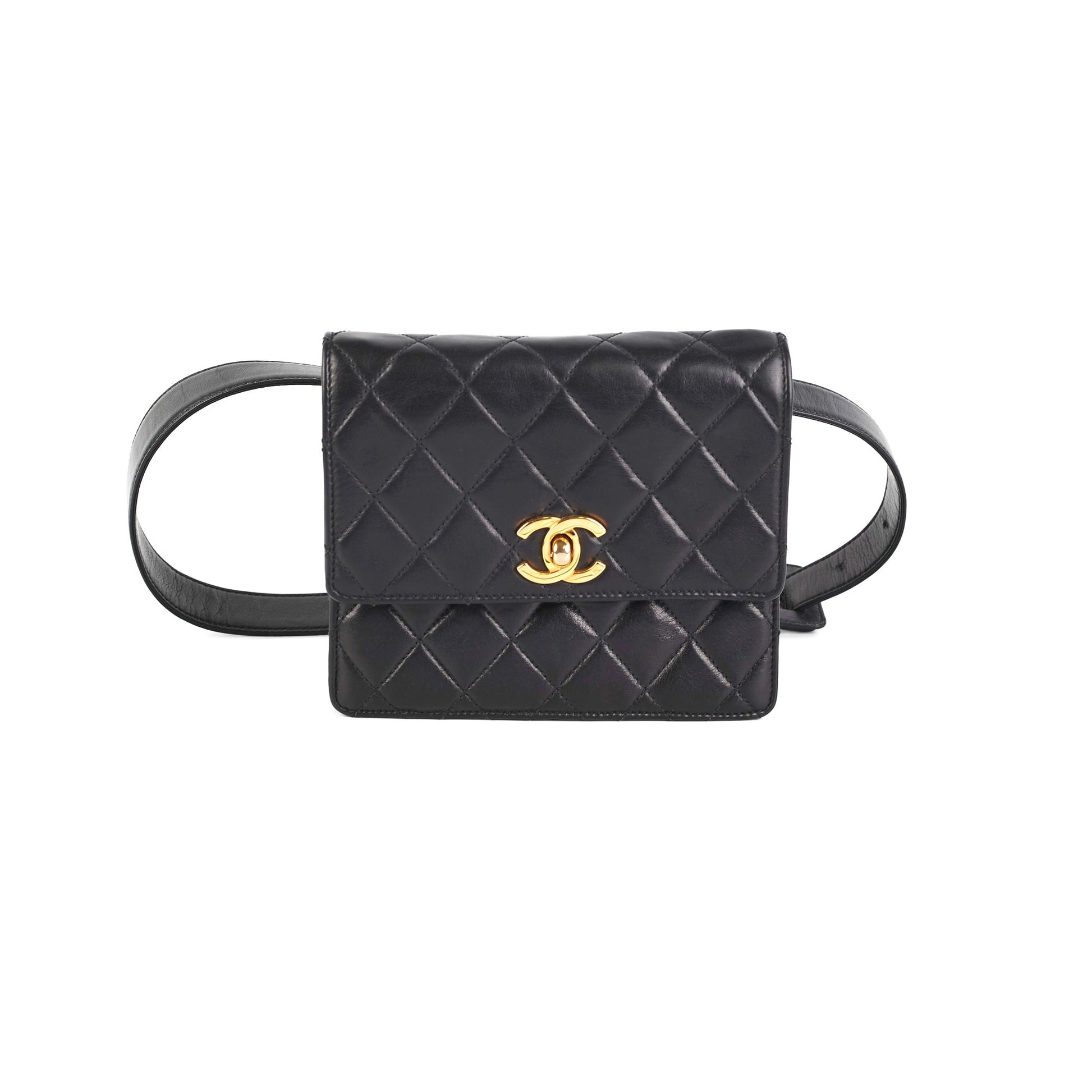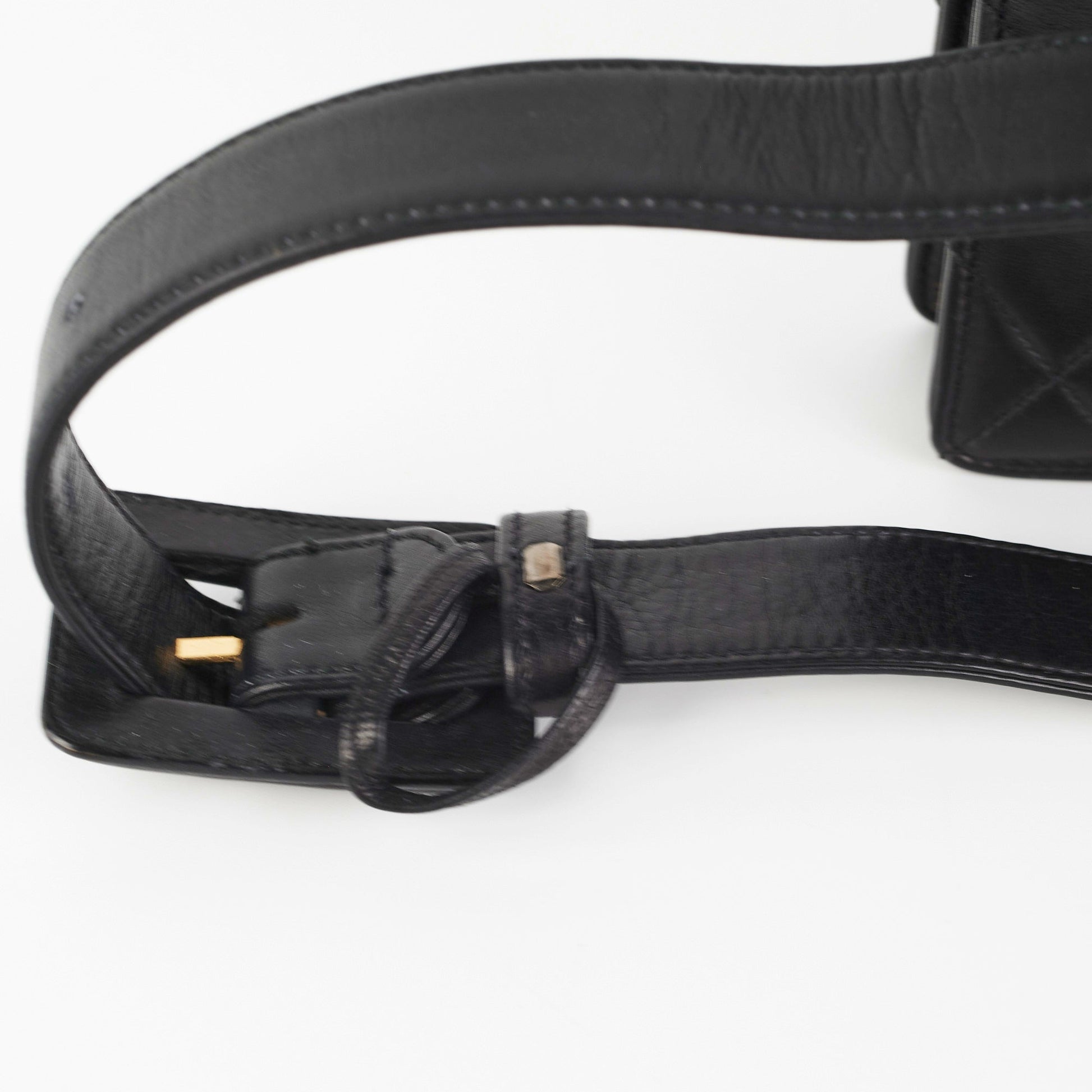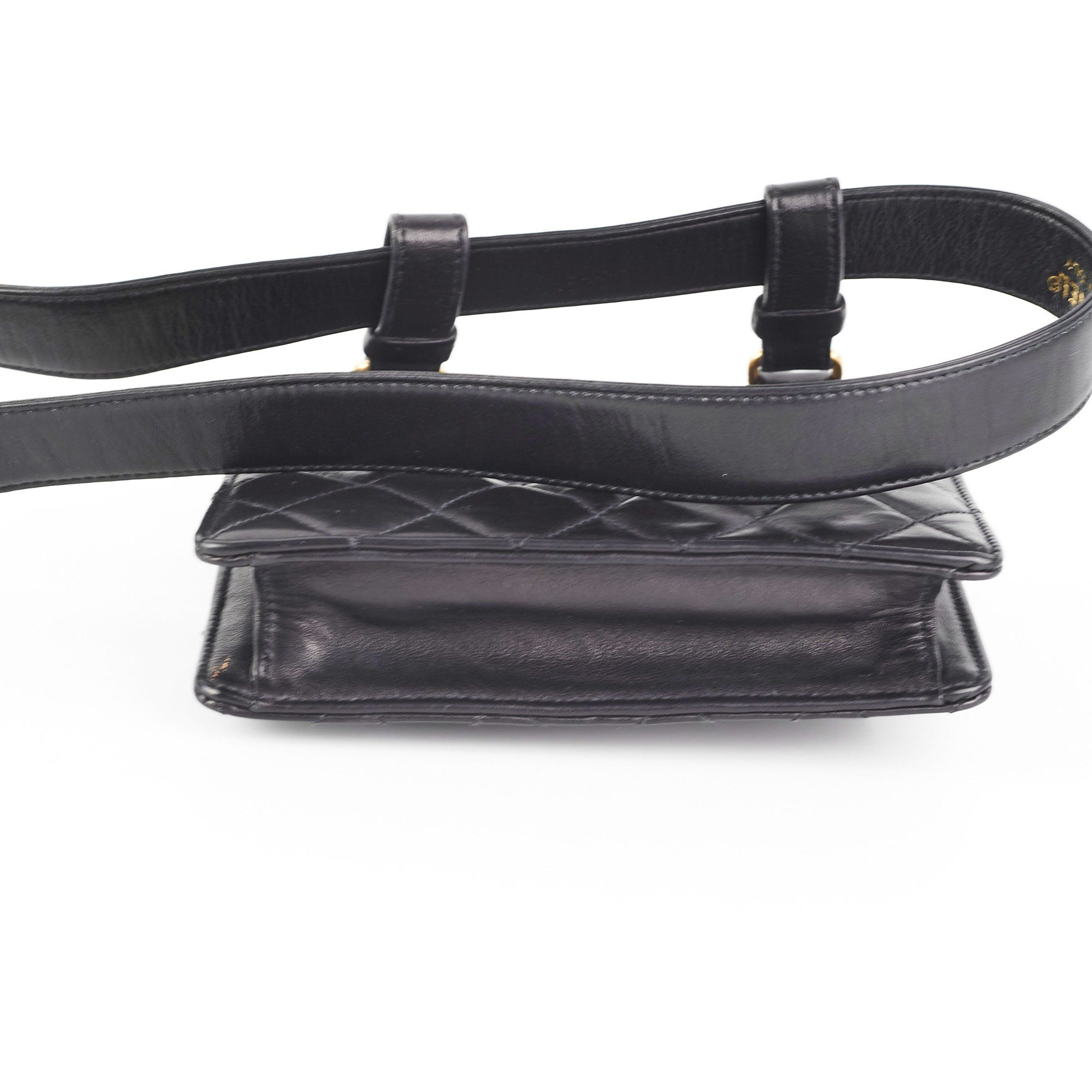Chanel Vintage Square Mini Black Lambskin Belt Bag Size 70