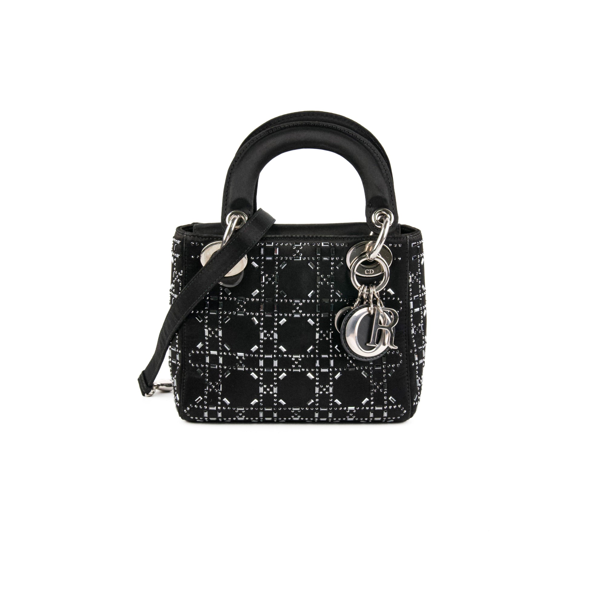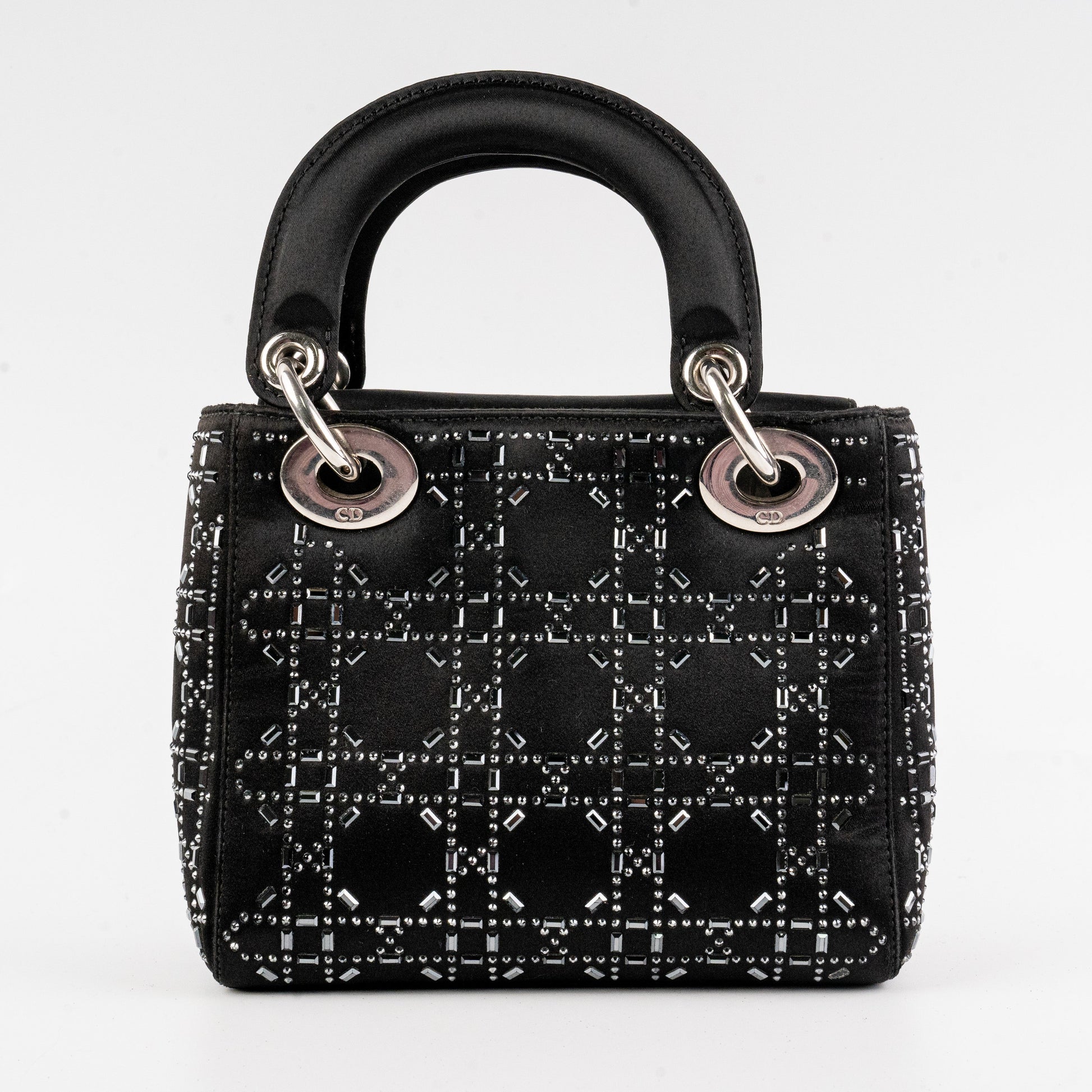 Christian Dior Mini Lady Dior Strass Satin Bag Black