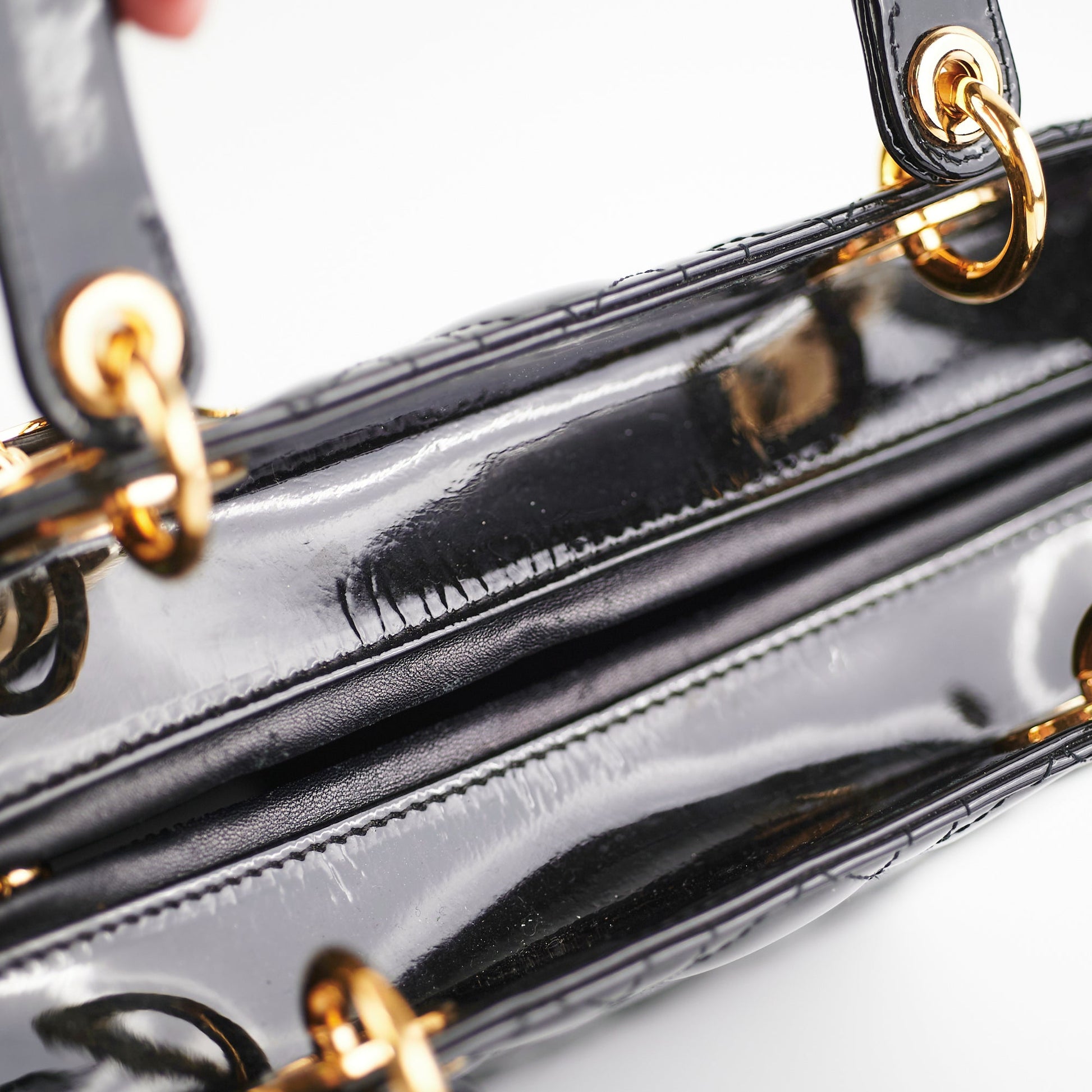 Condition: 9.3/10 Excellent Condition - light hairline scratches and tarnishing on hardware and feet, light marks throughout patent