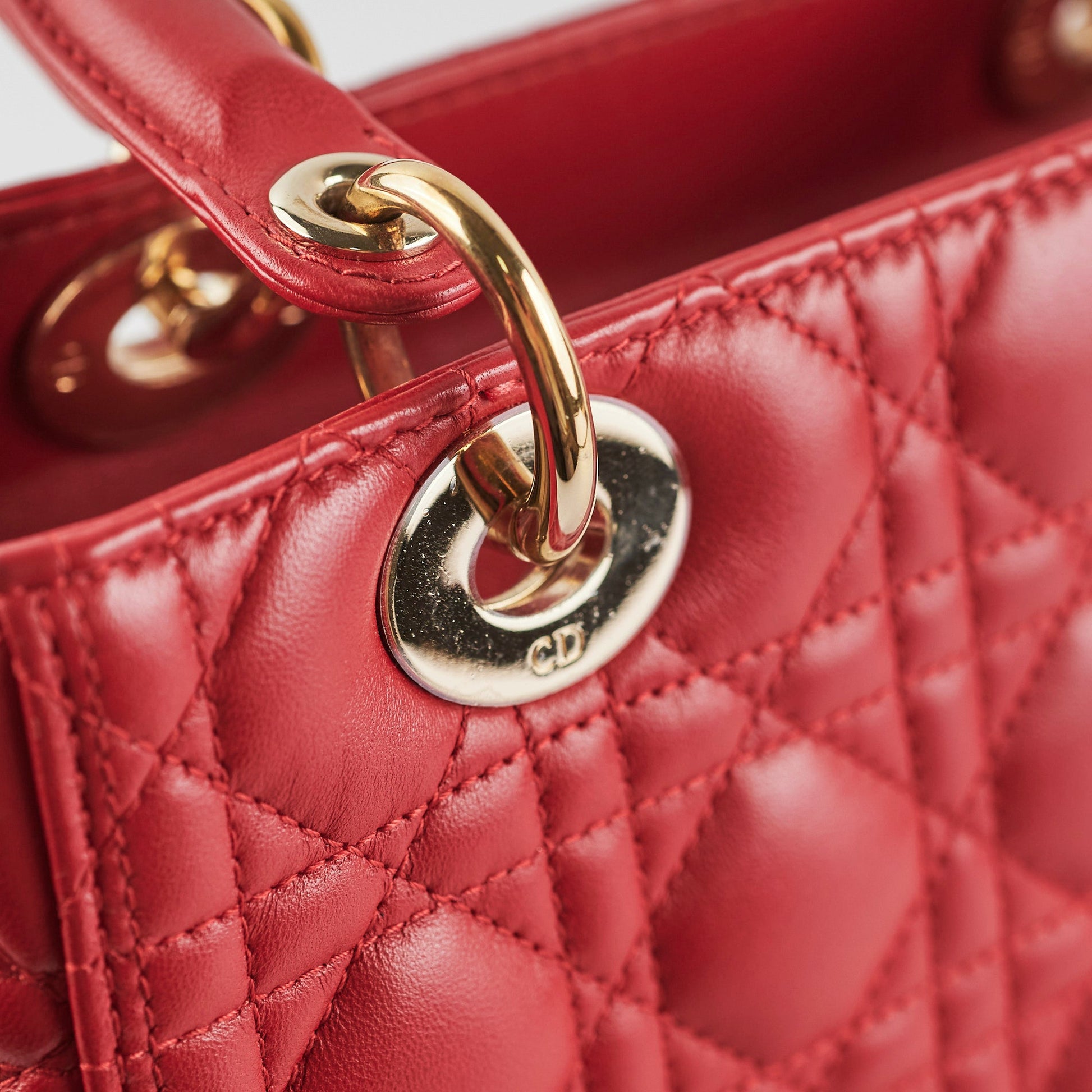 Christian Dior Medium Lady Dior Red Lambskin Bag