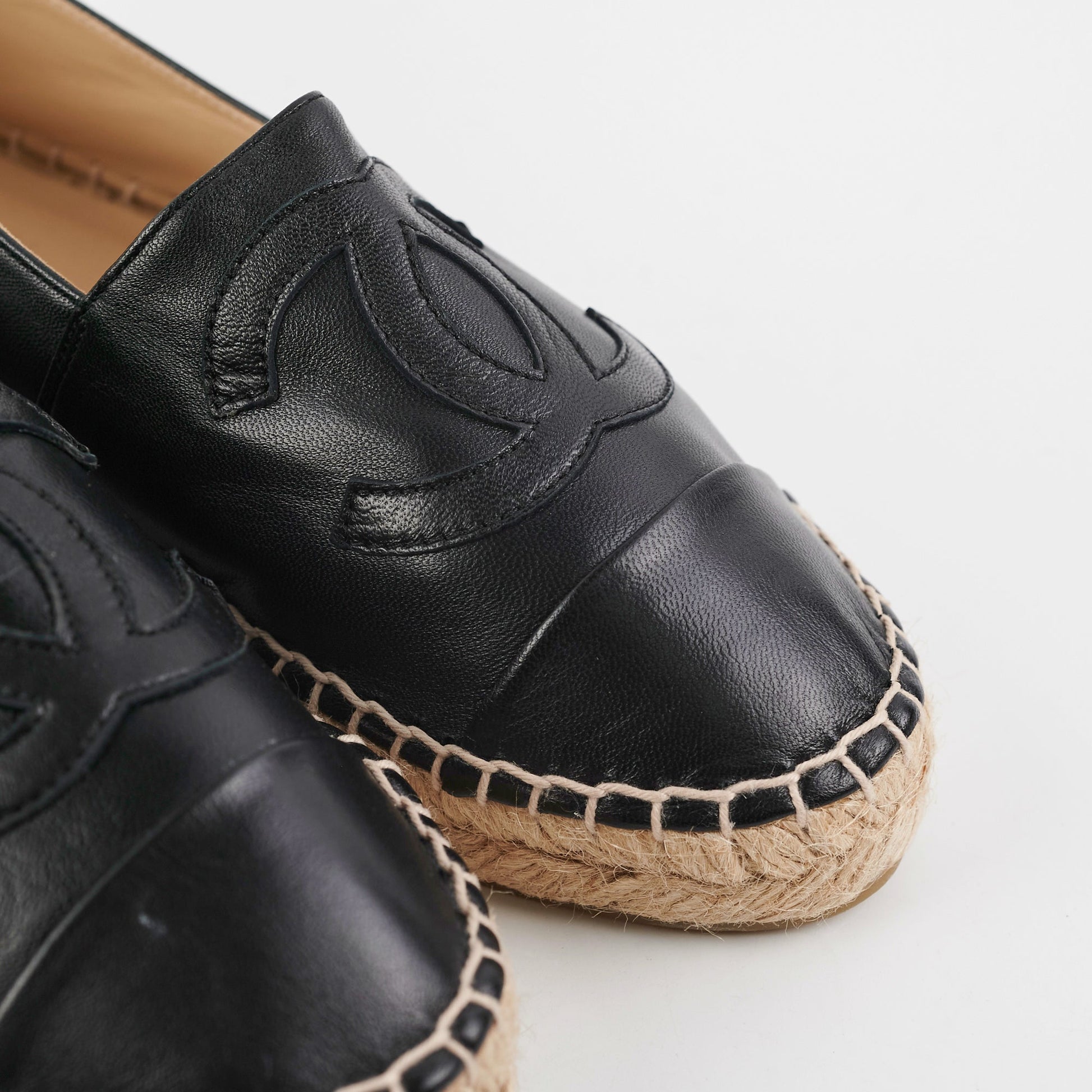 Chanel Espadrilles Size 38 Black Lambskin Shoes