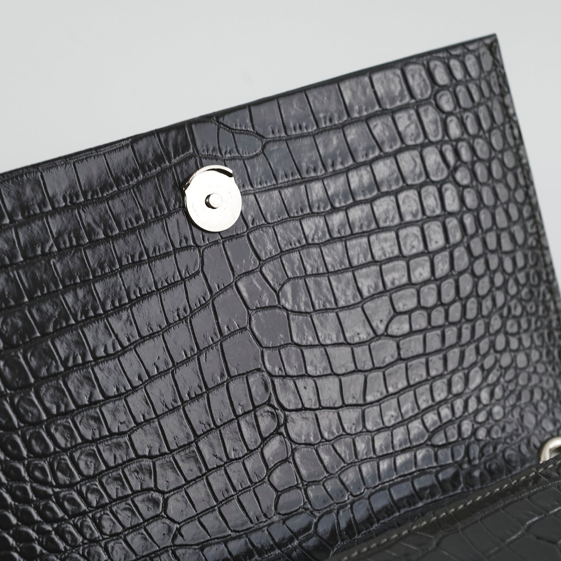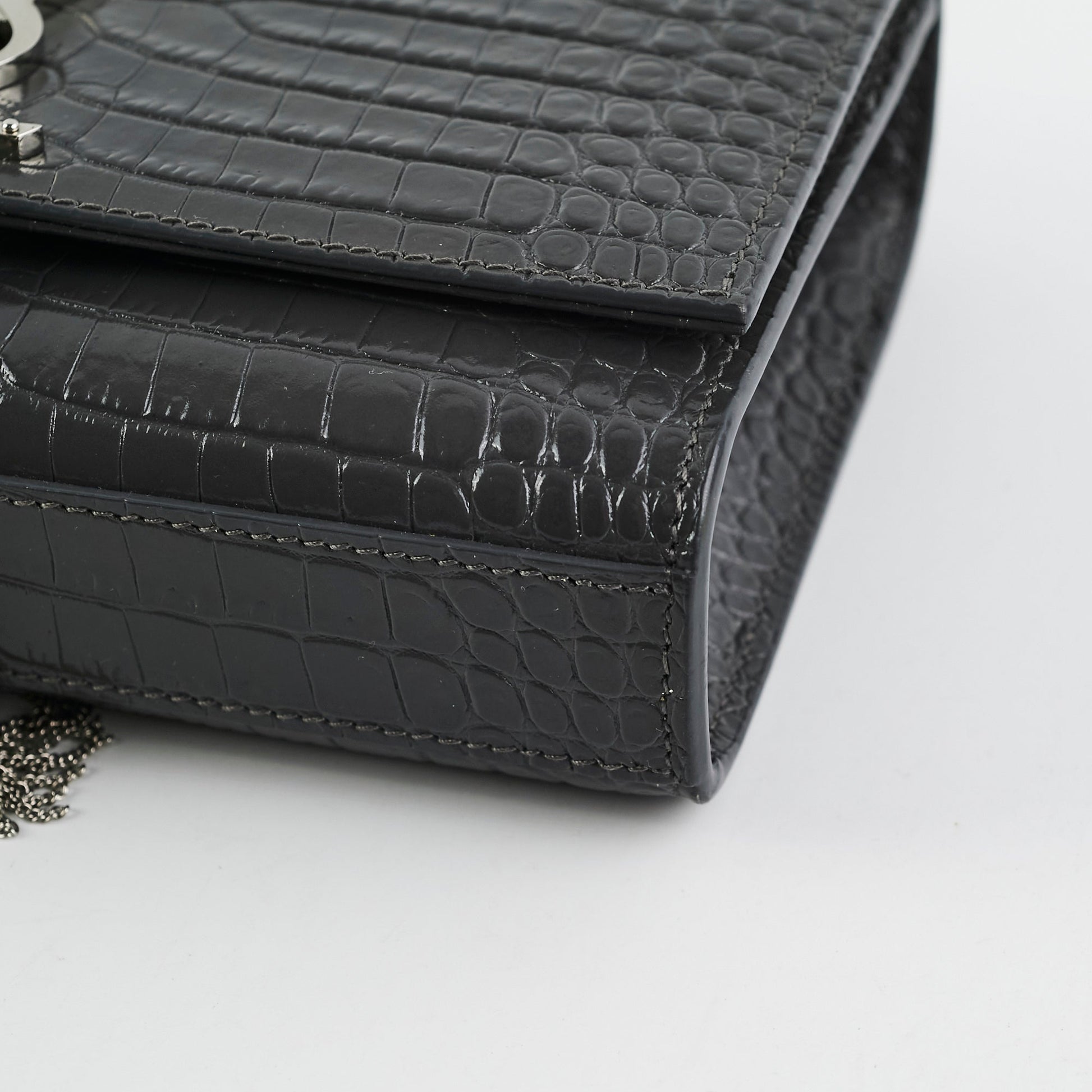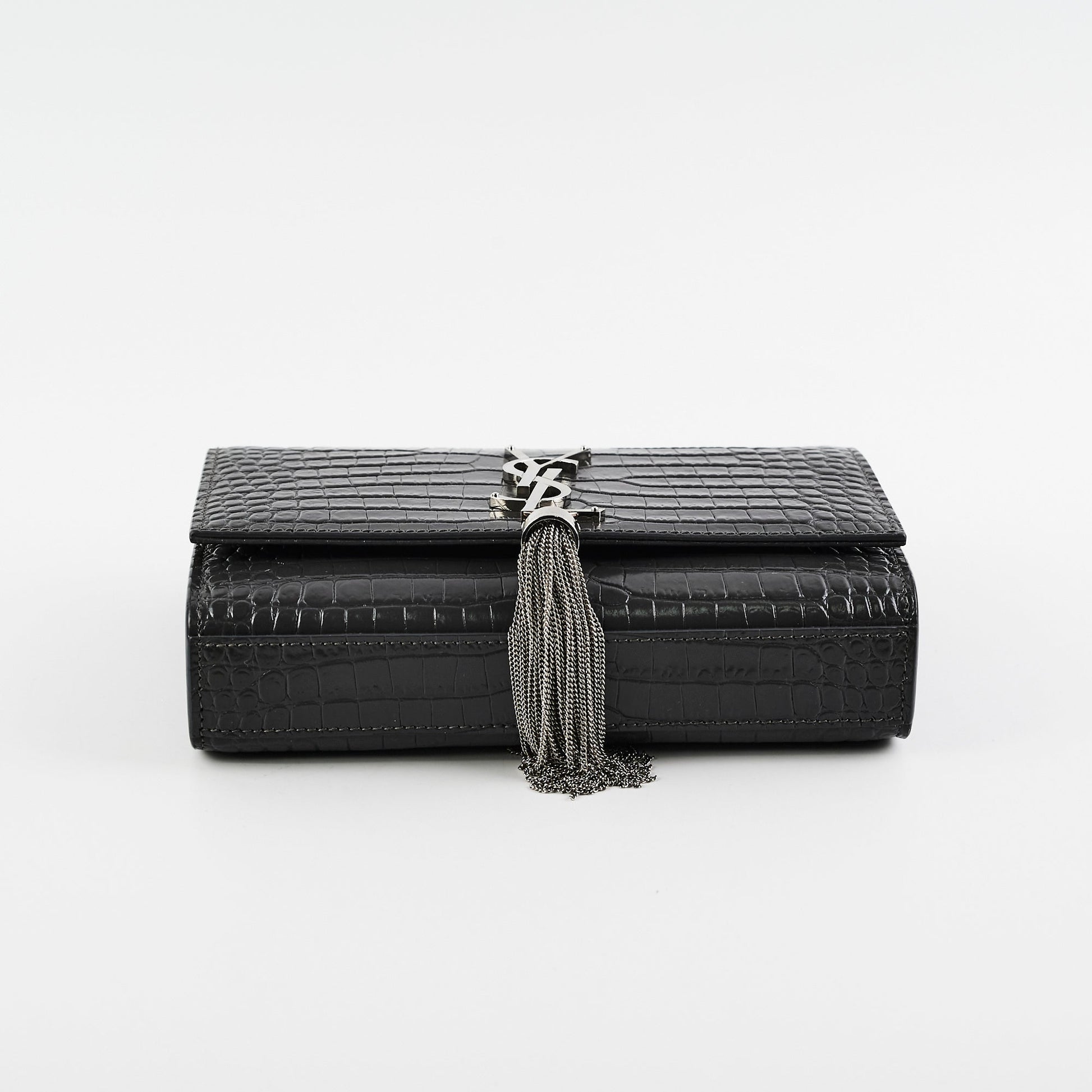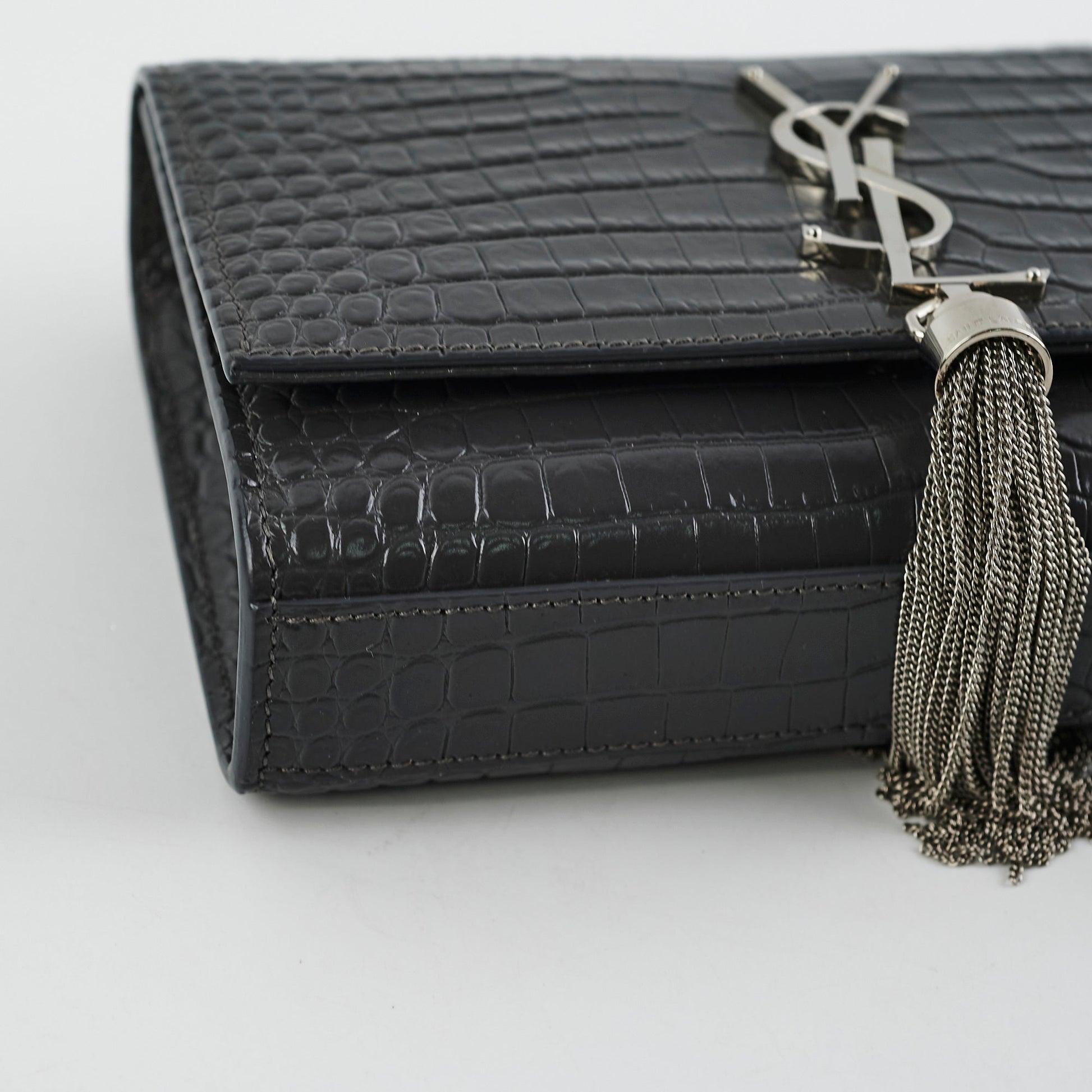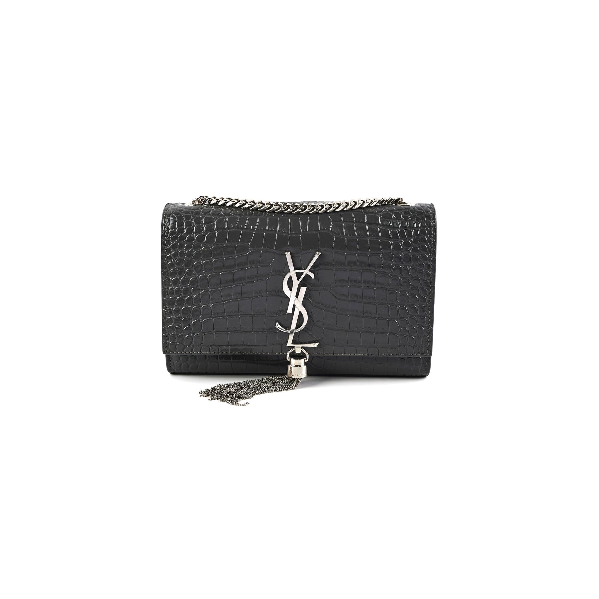 Saint Laurent Small Kate Crocodile Embossed Dark Grey