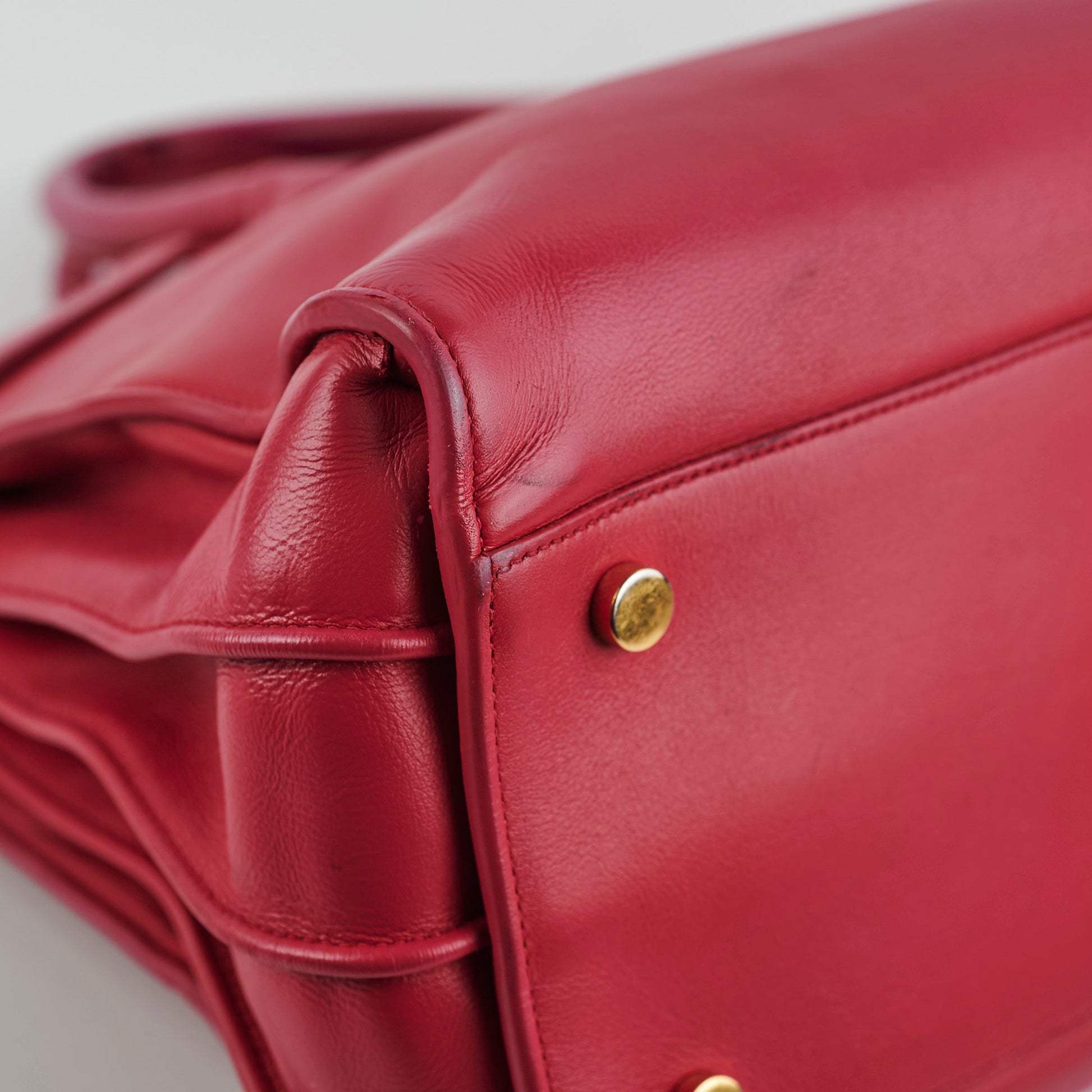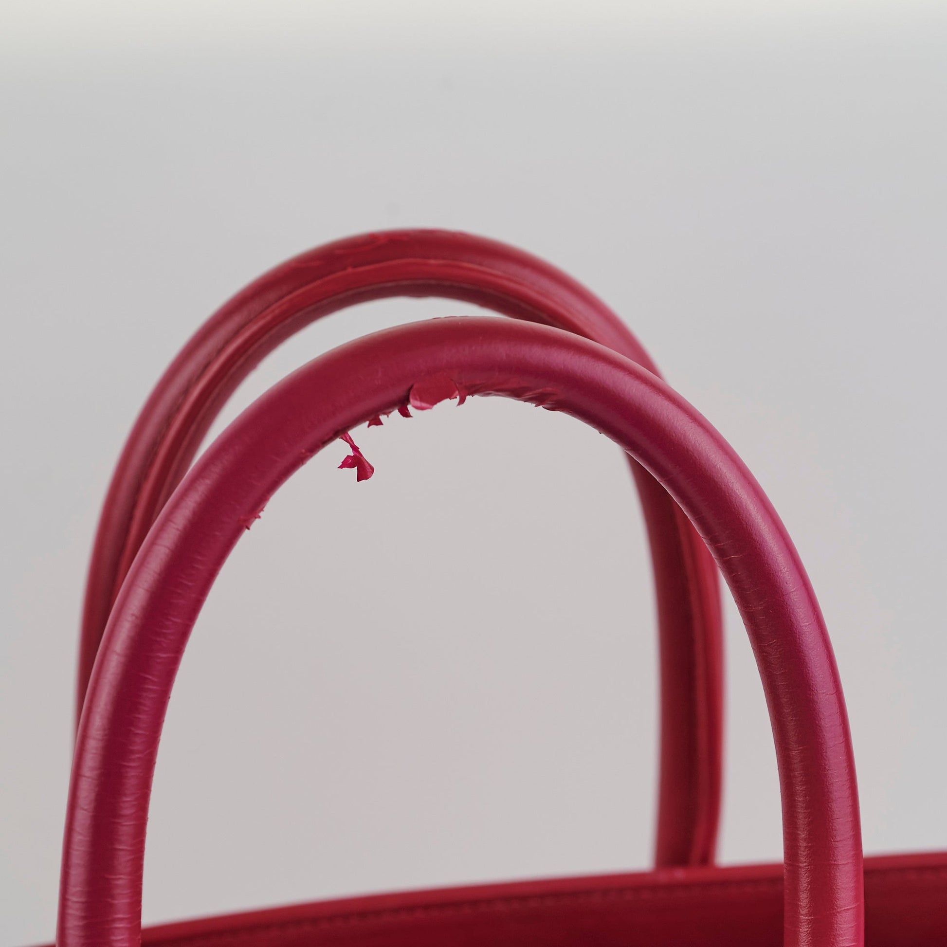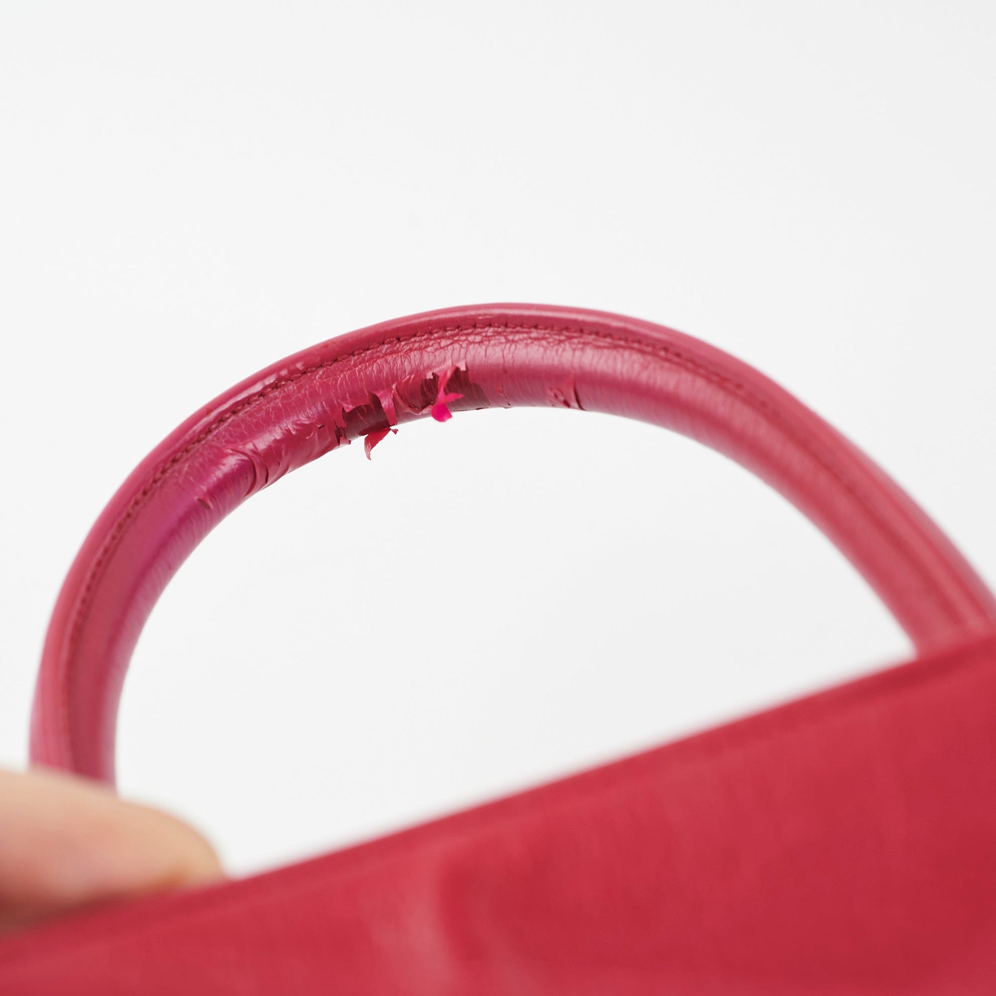 Condition: | 7/10 Fair Condition - Peeling on handle, pen marks on interior, wears and colour transfer on leather corners base, soften leather, No Strap |