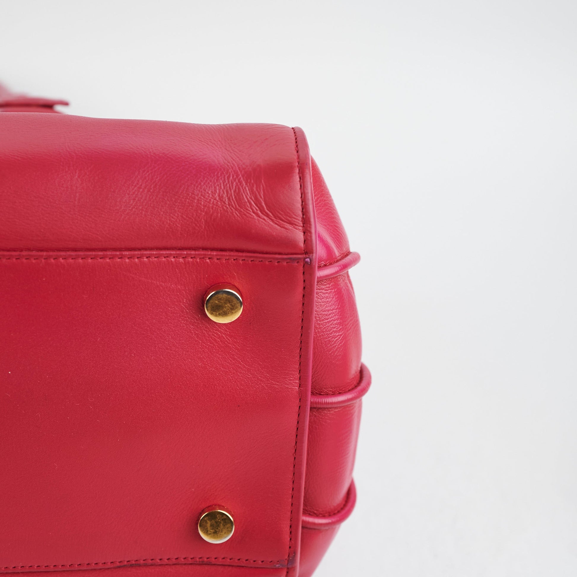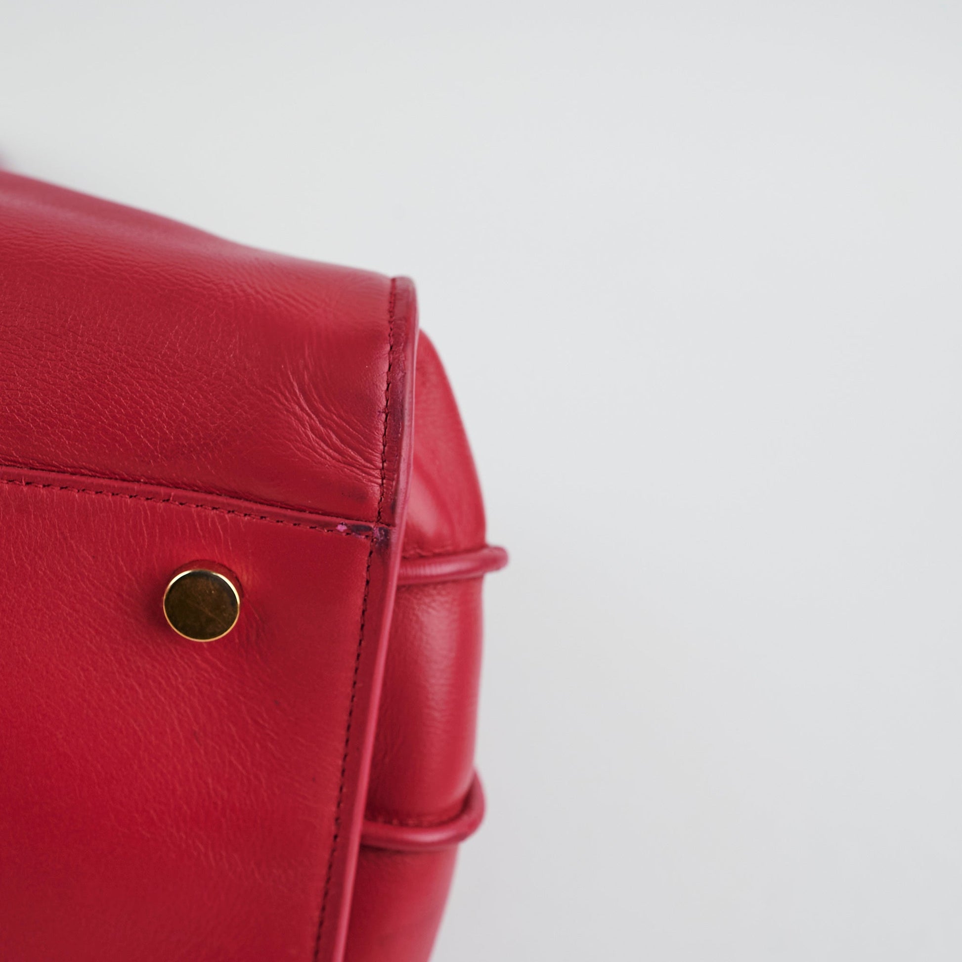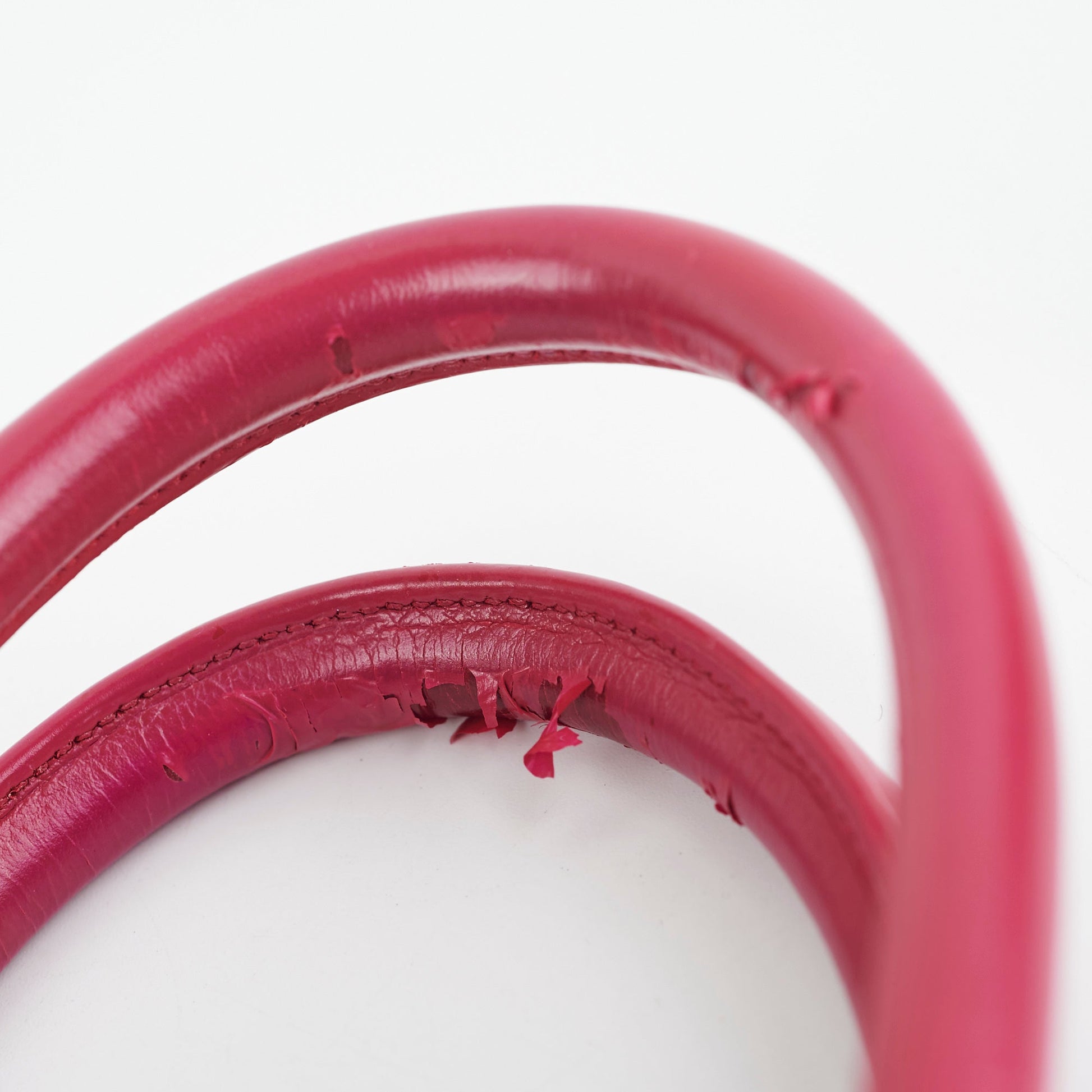 Condition: | 7/10 Fair Condition - Peeling on handle, pen marks on interior, wears and colour transfer on leather corners base, soften leather, No Strap |