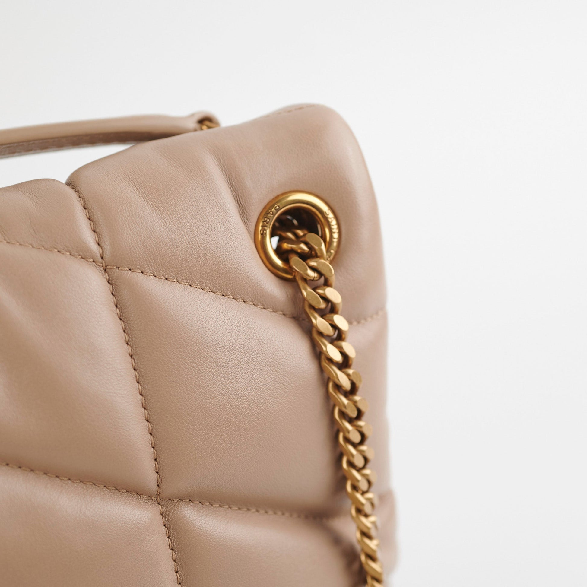 Saint Laurent Small Puffer Lou Beige Shoulder Bag