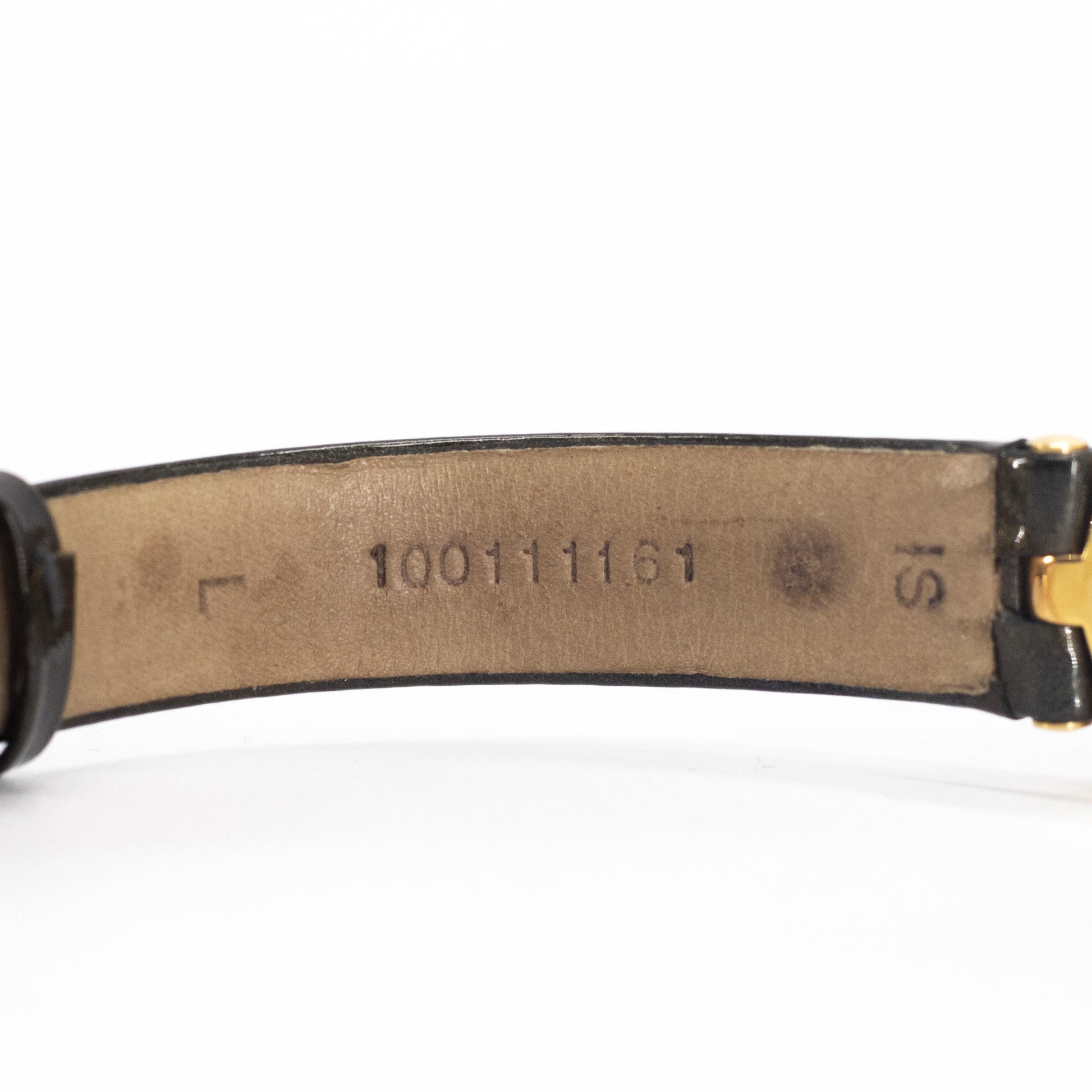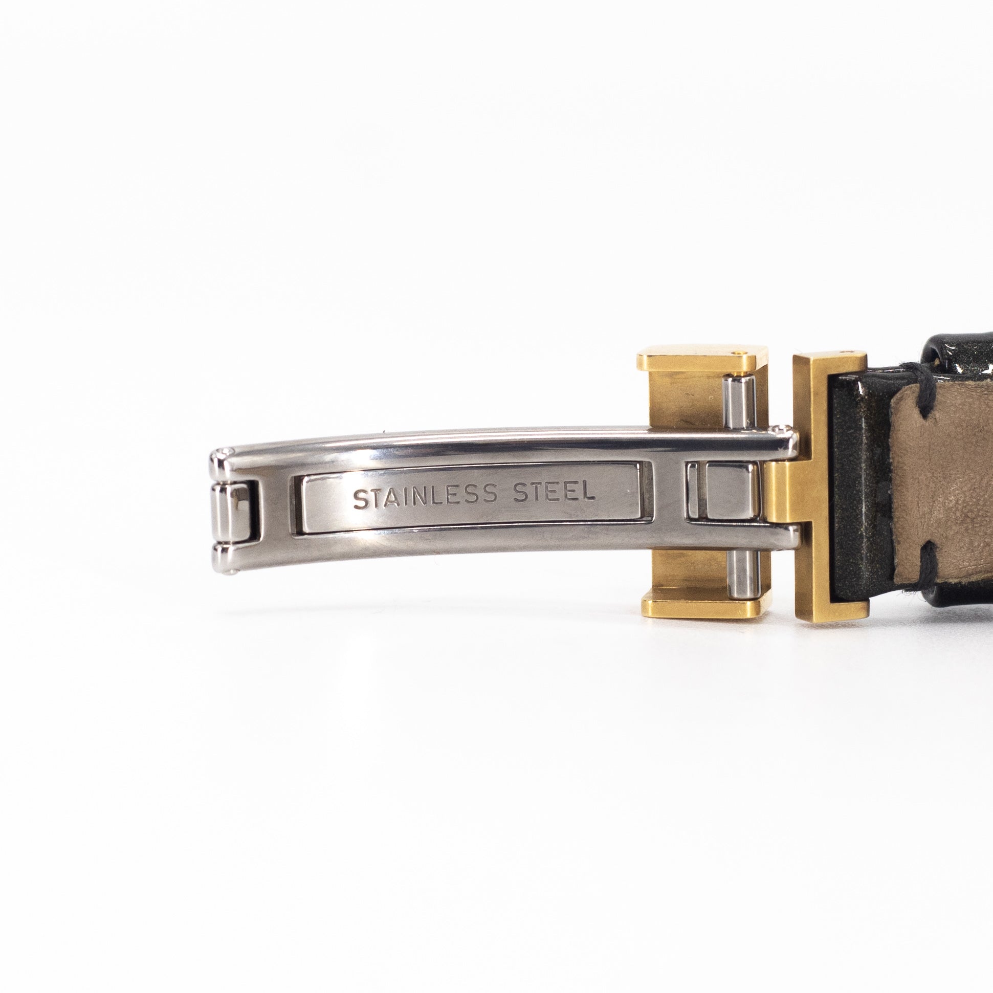 Condition: 9.5/10 Immaculate Condition - sapphire crystal with black dial, quartz movement, dark olive calfskin strap