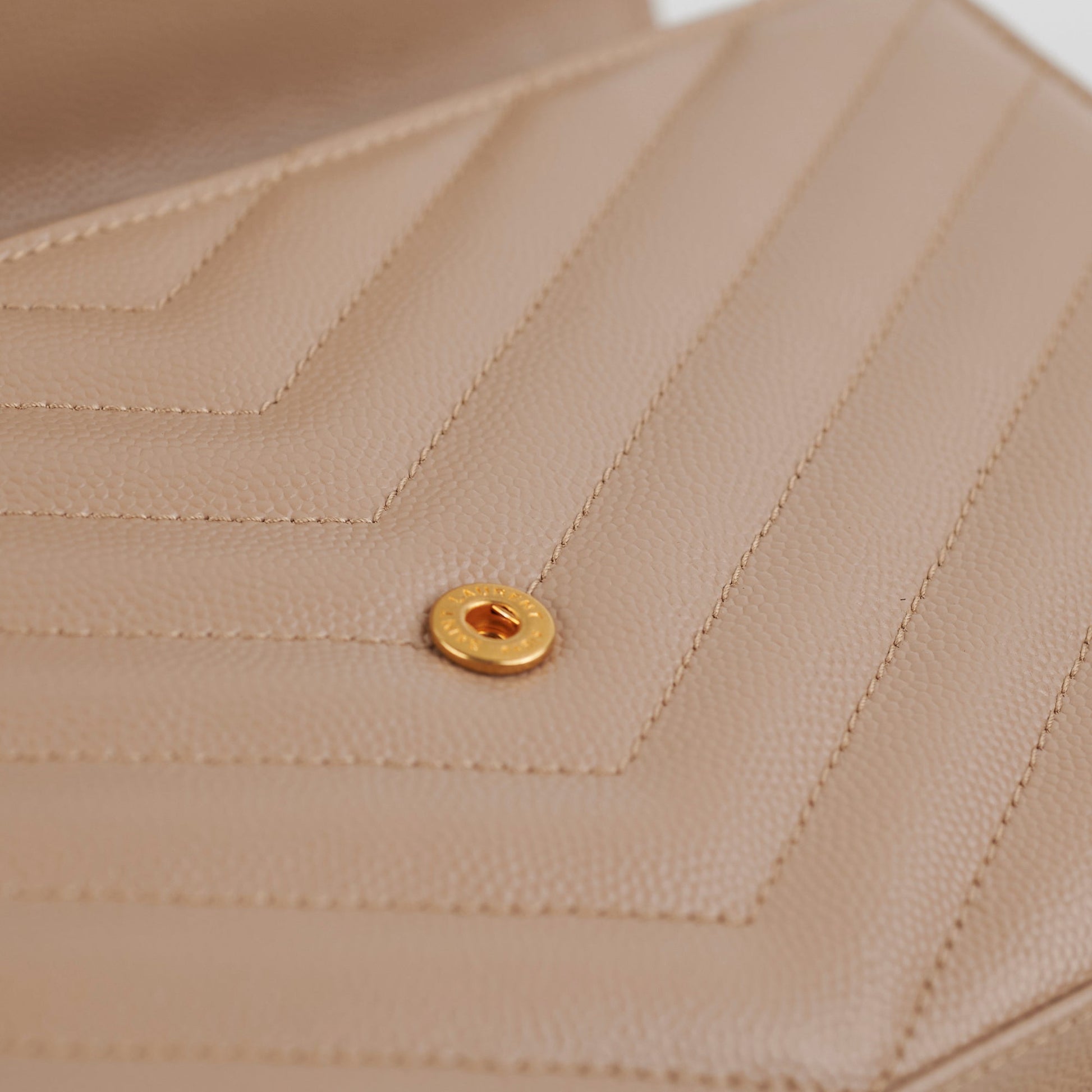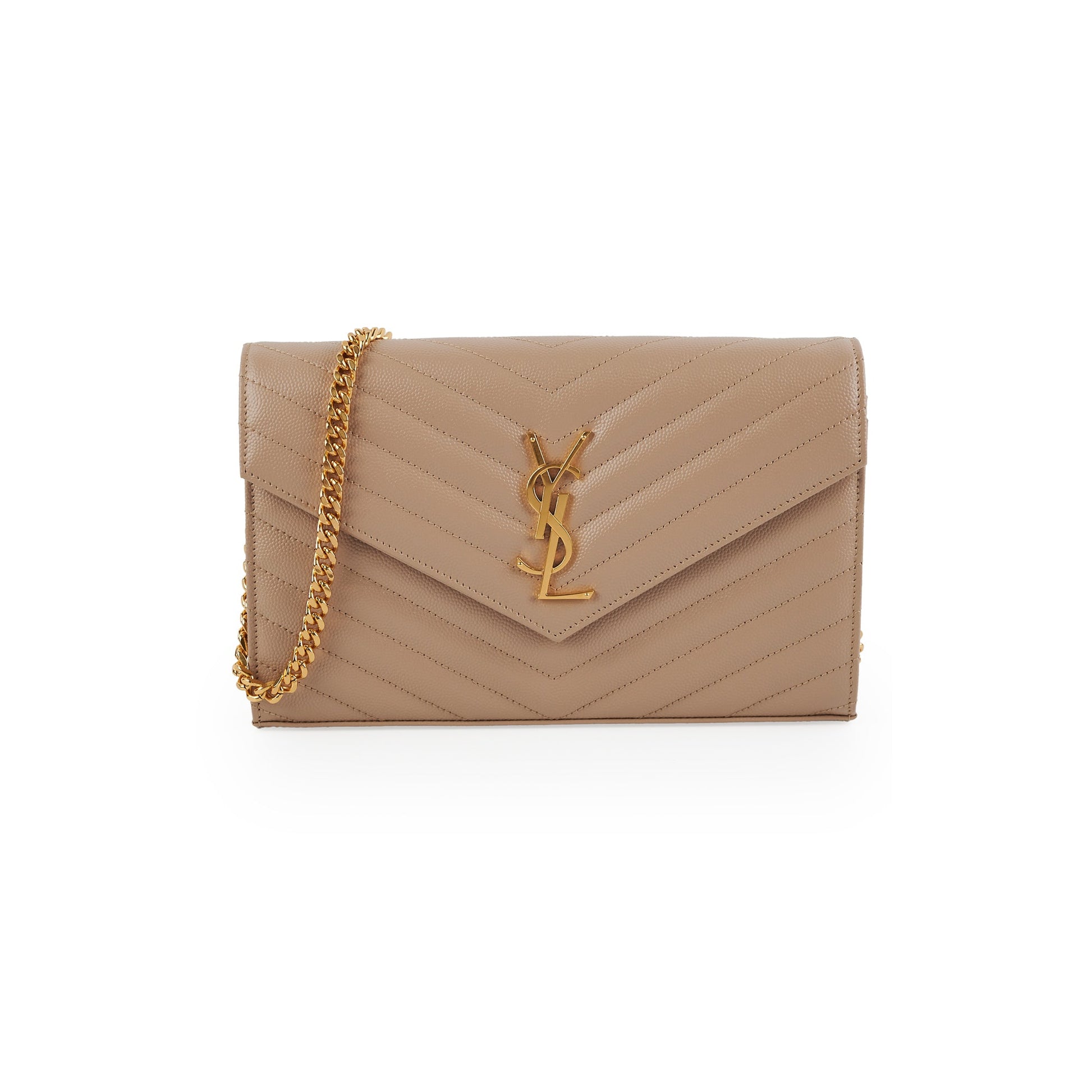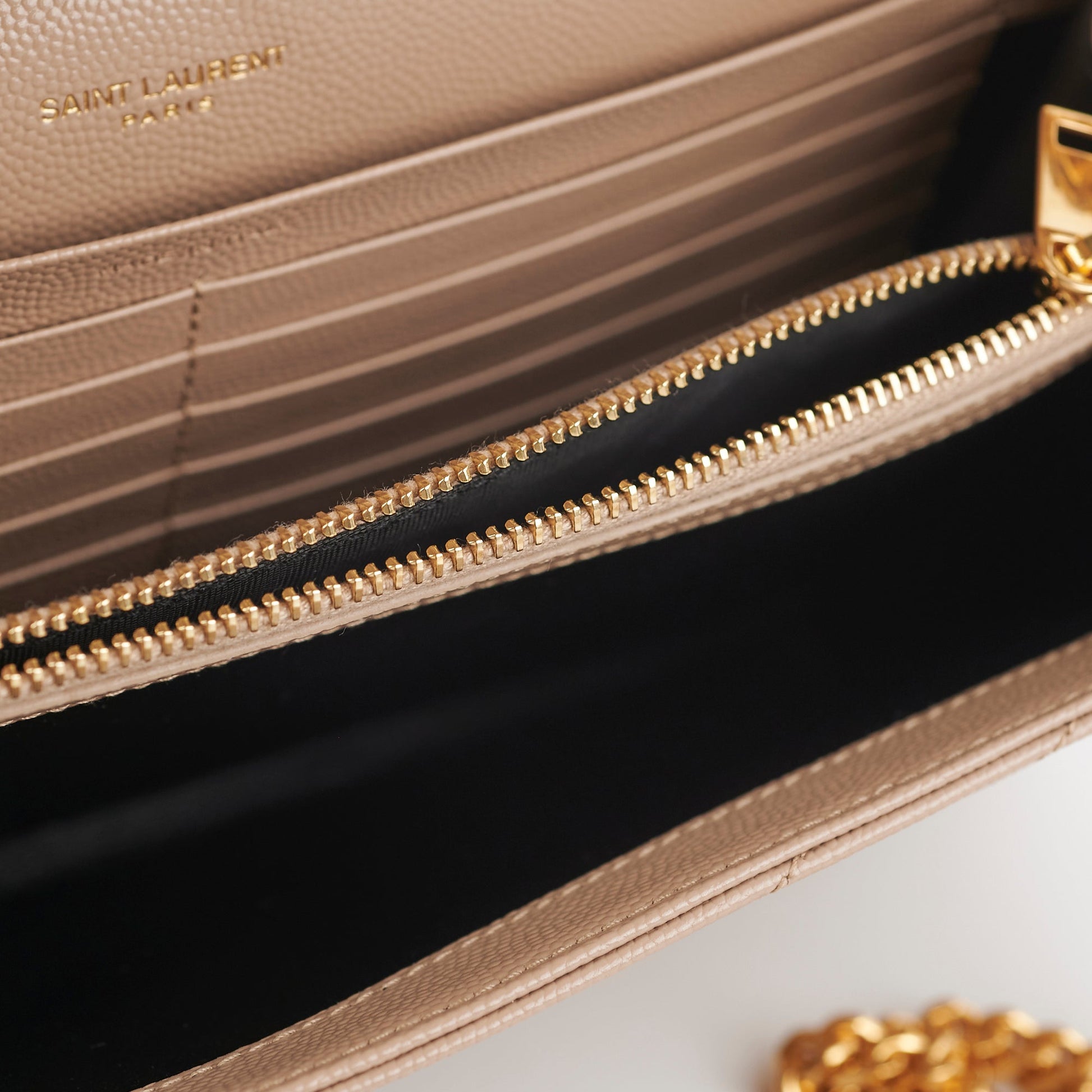 Saint Laurent Classic Cassandre Chain Wallet on Chain WOC Dark Beige