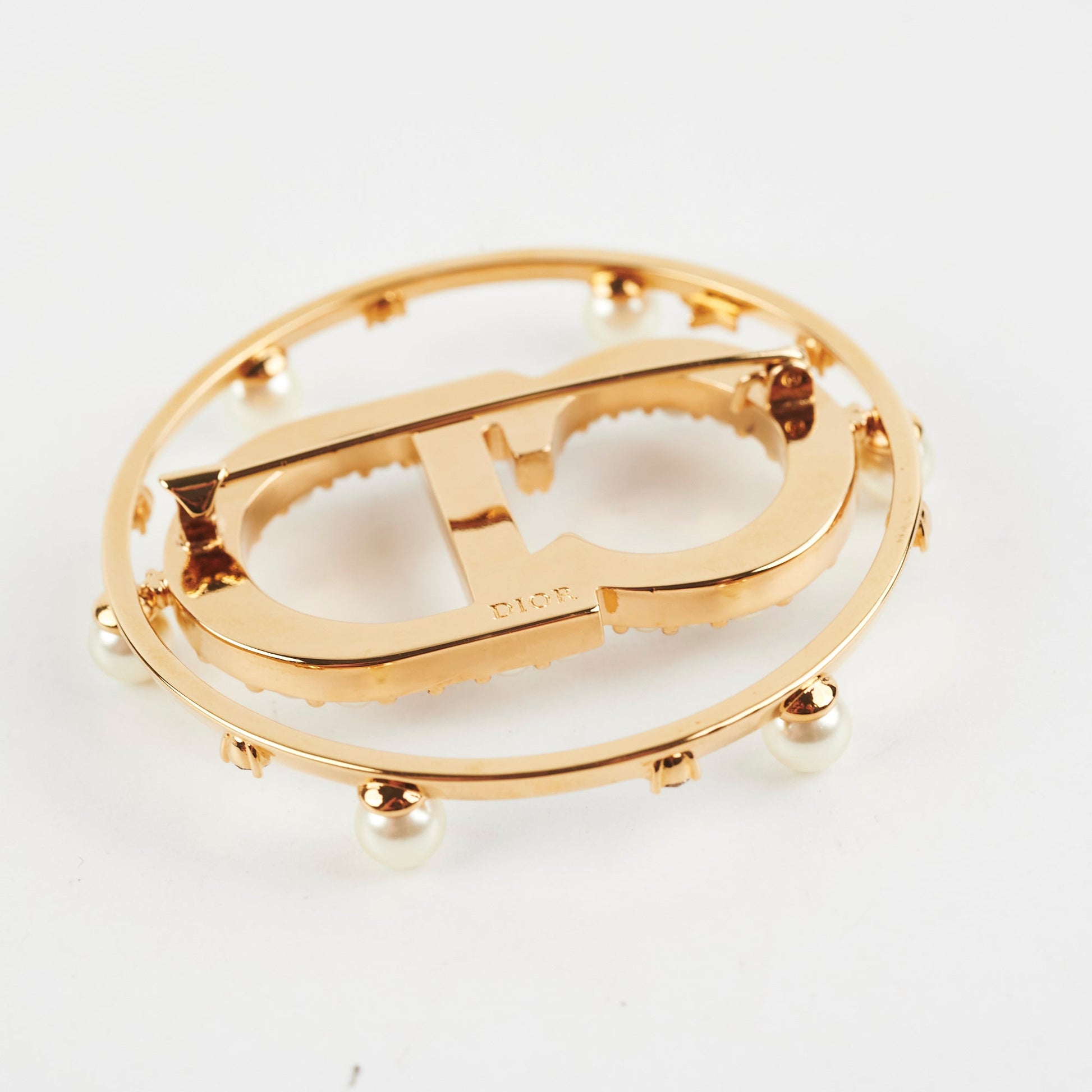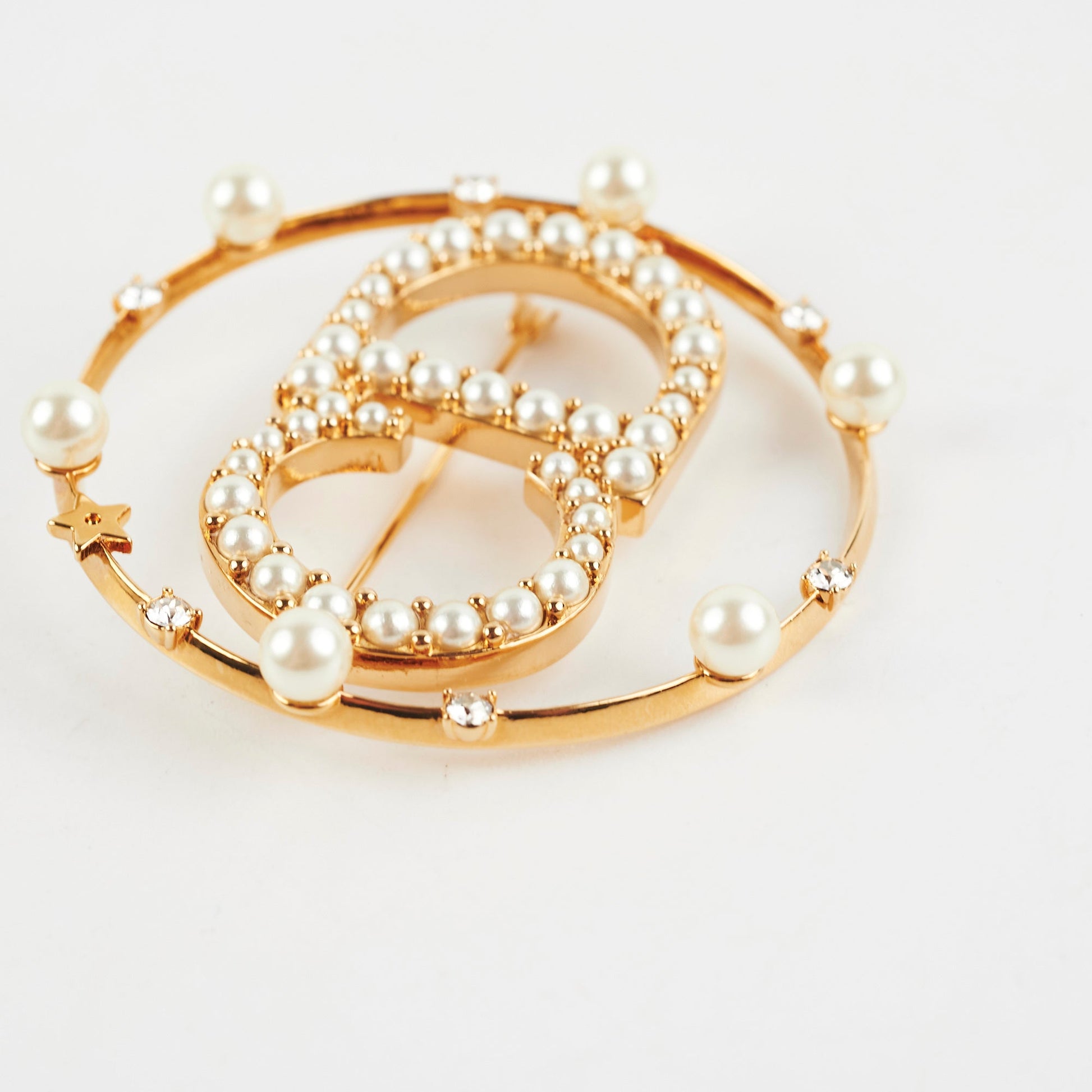 Christian Dior CD Gold Rhinestone Pearl Brooch Costume Jewellery