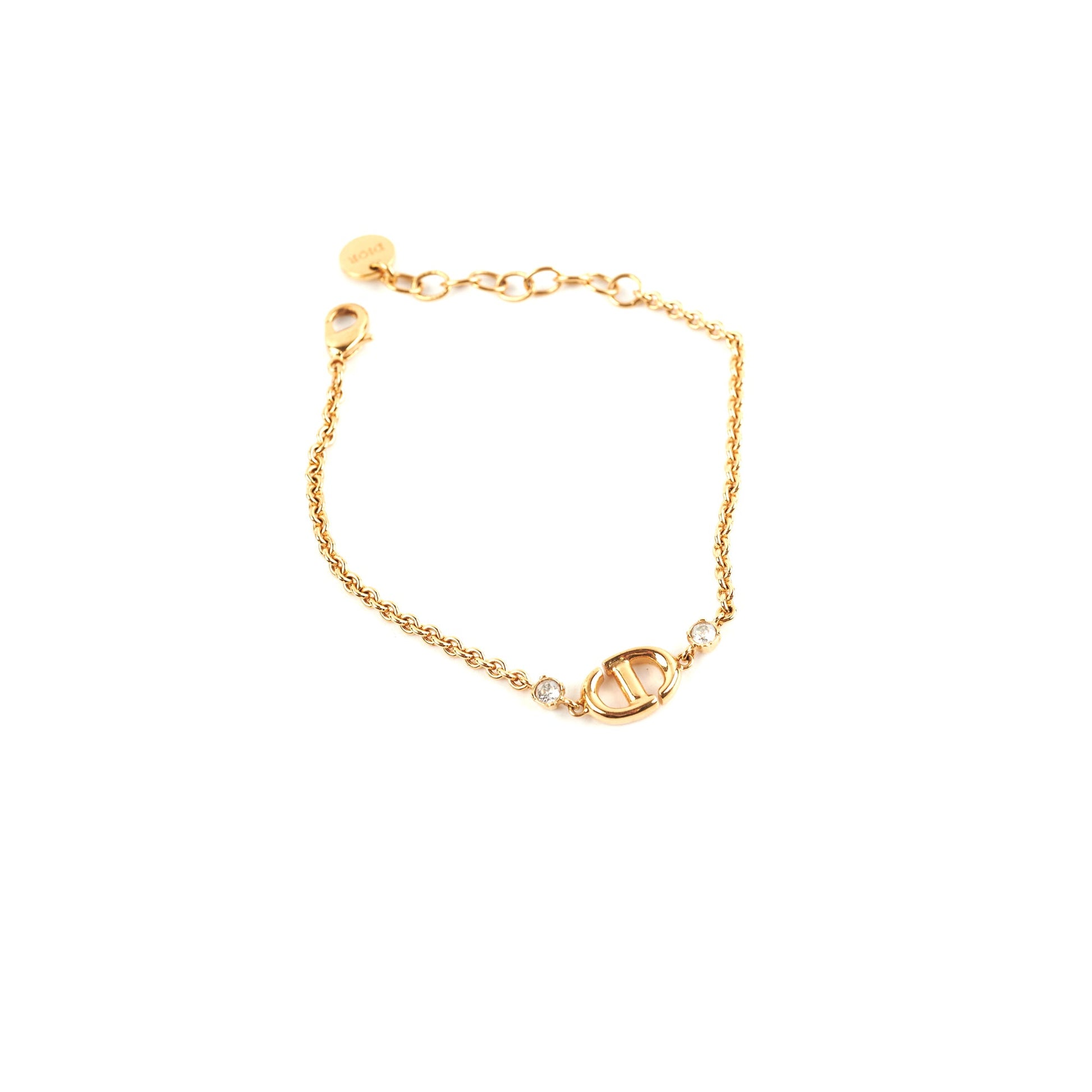 Christian Dior Gold CD Logo Rhinestone Bracelet Costume Jewellery