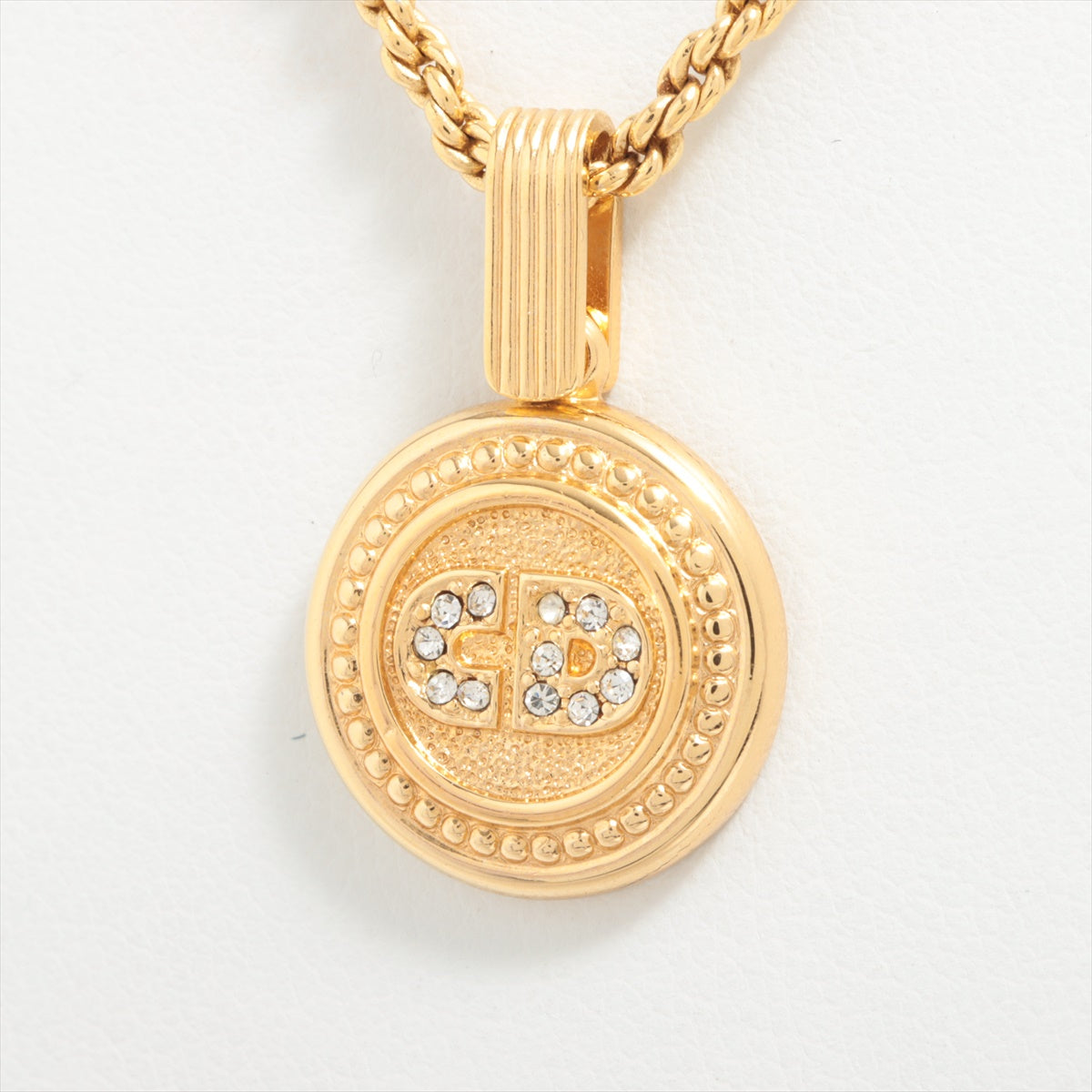 Christian Dior Round Pendant Rhinestone Gold Necklace Costume Jewellery