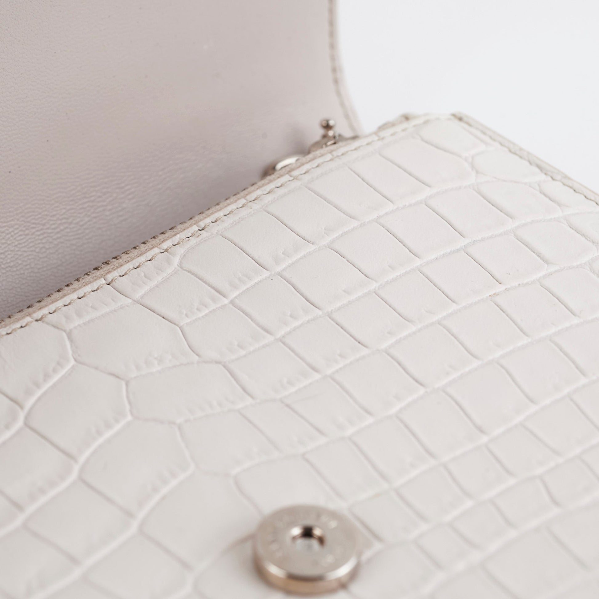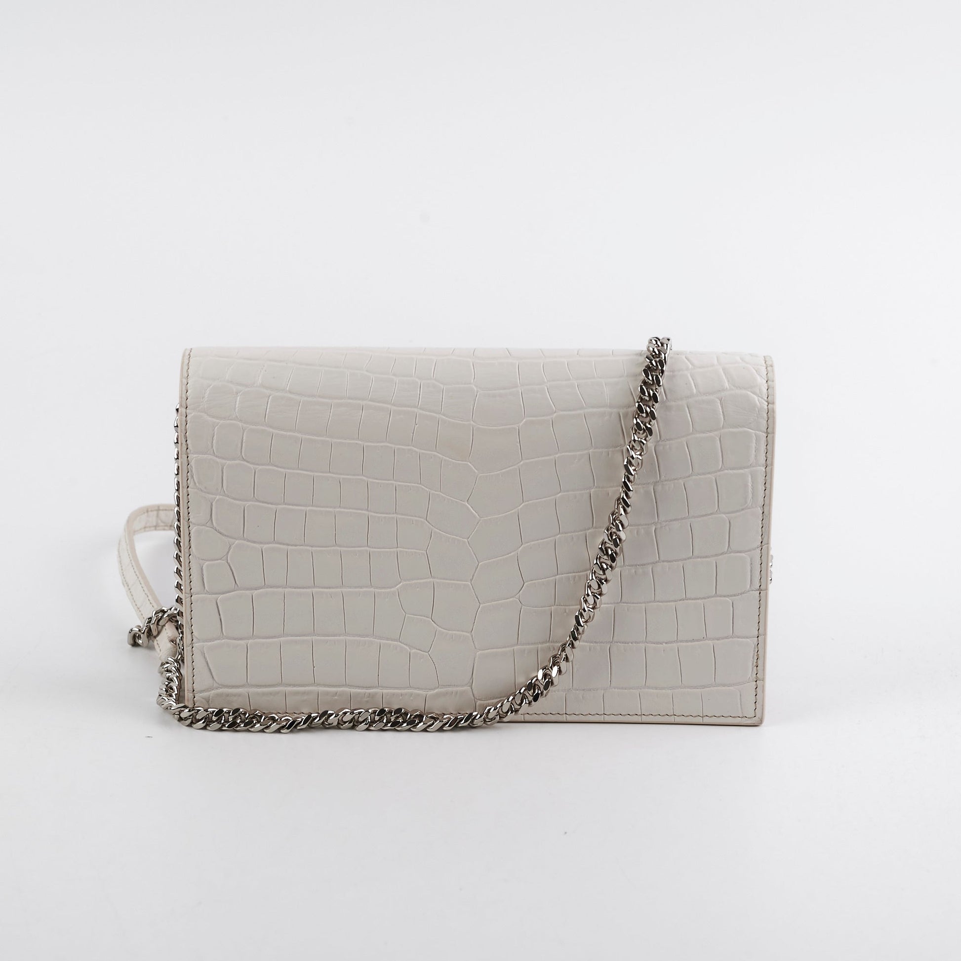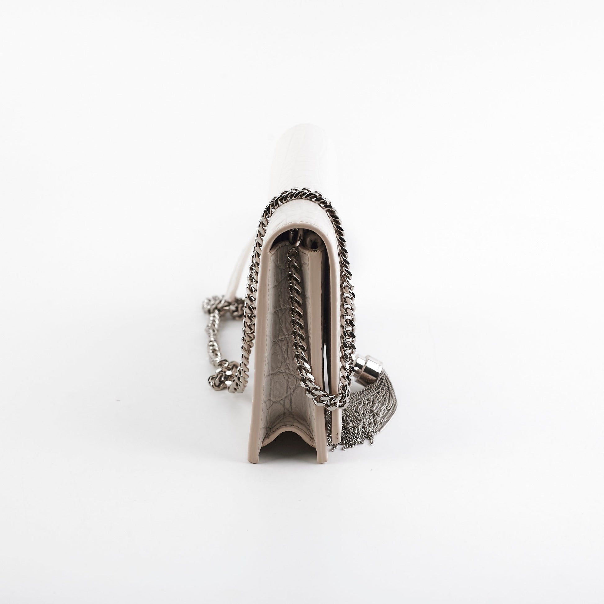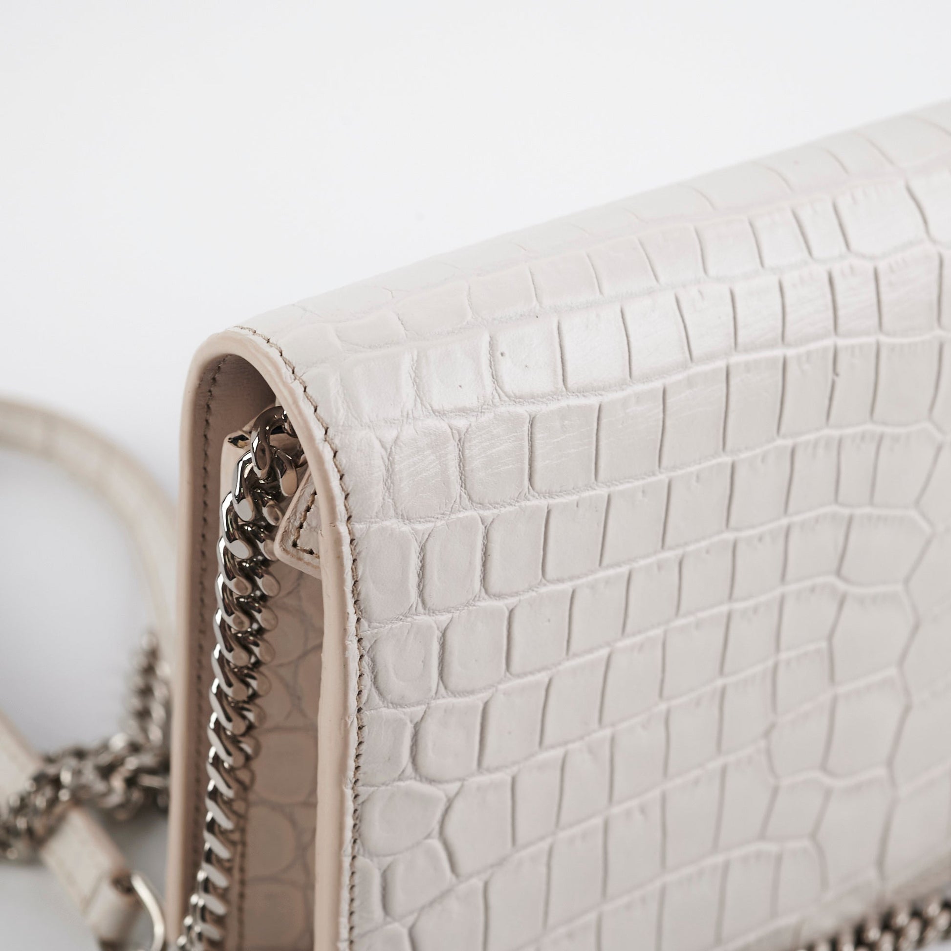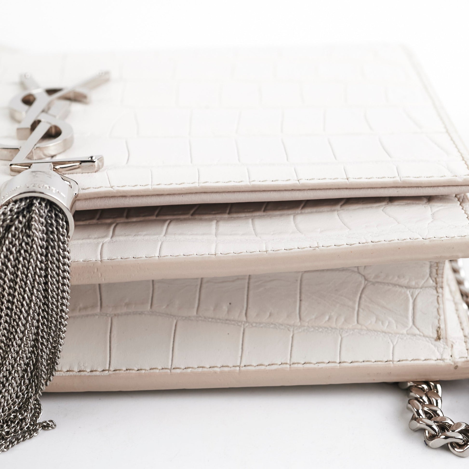 Saint Laurent Small Kate Tassel White Croc Wallet on Chain