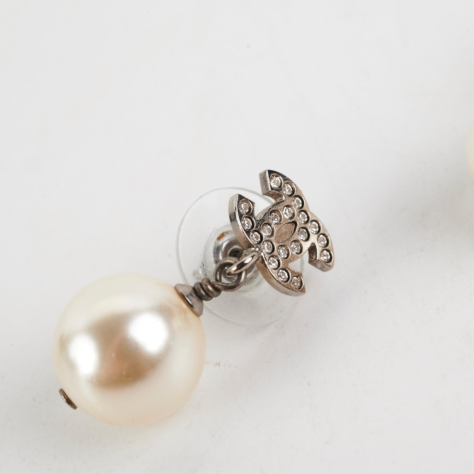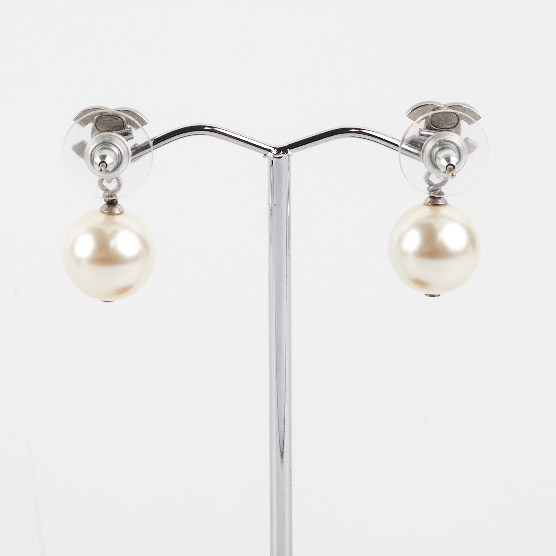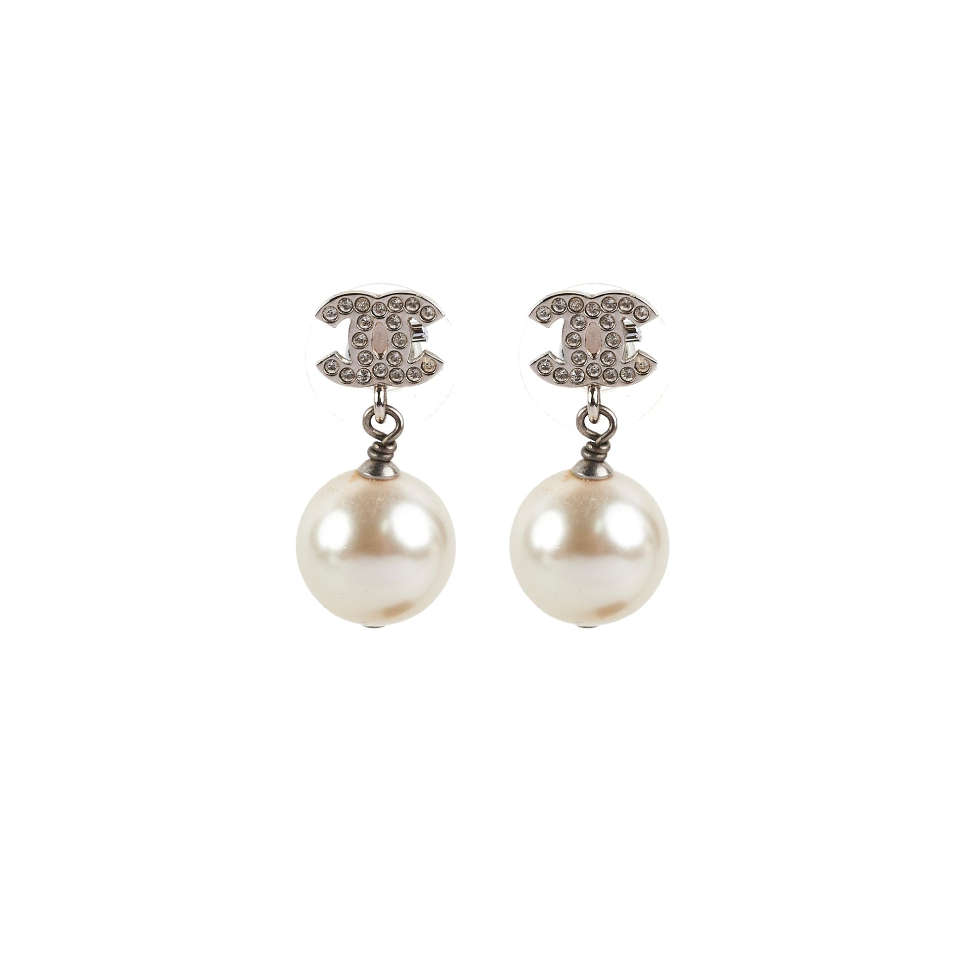 Chanel CC Logo Pearl Drop Earrings