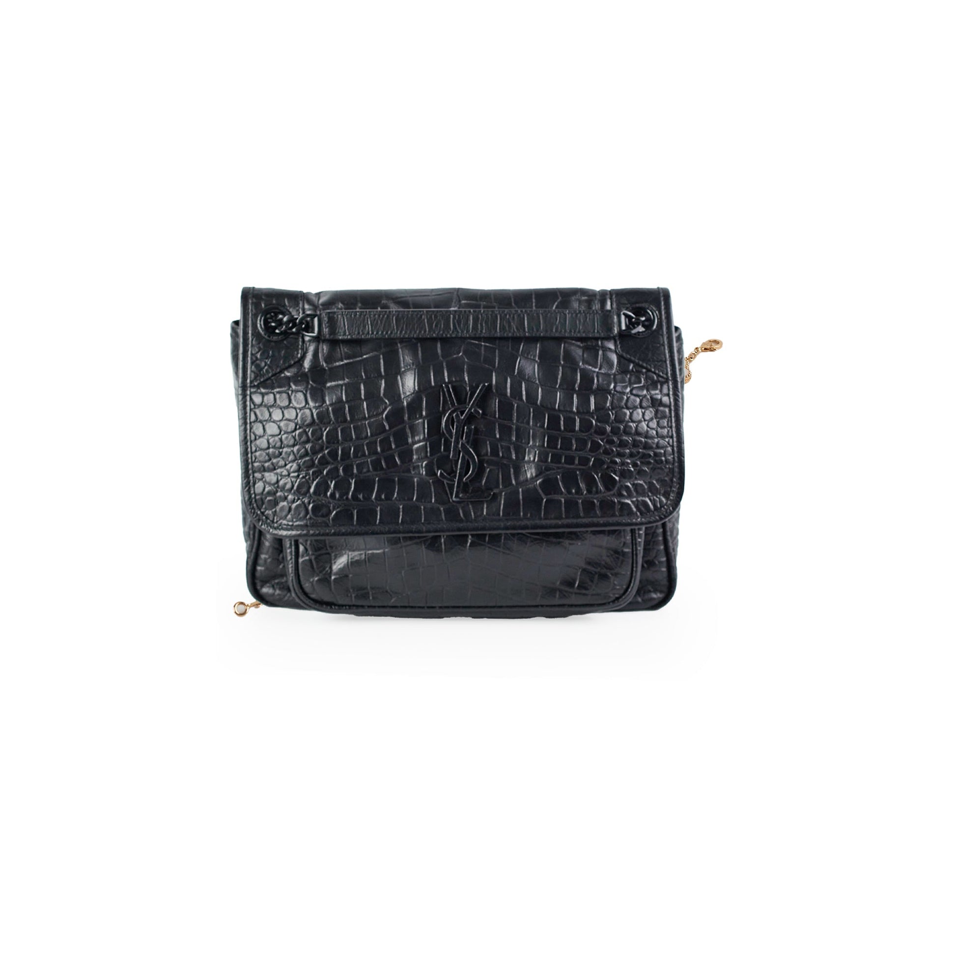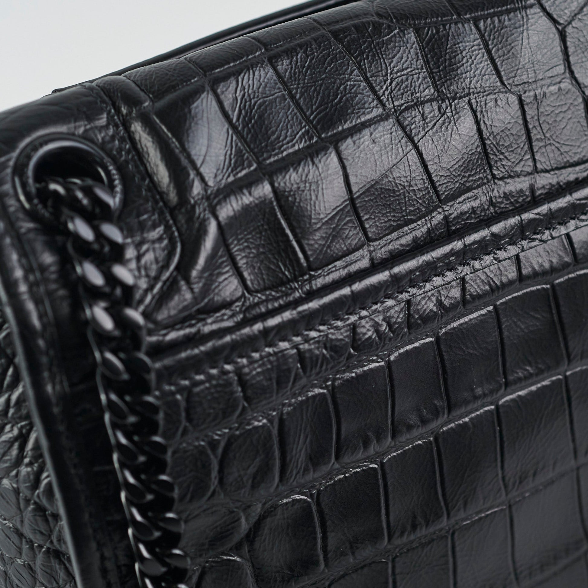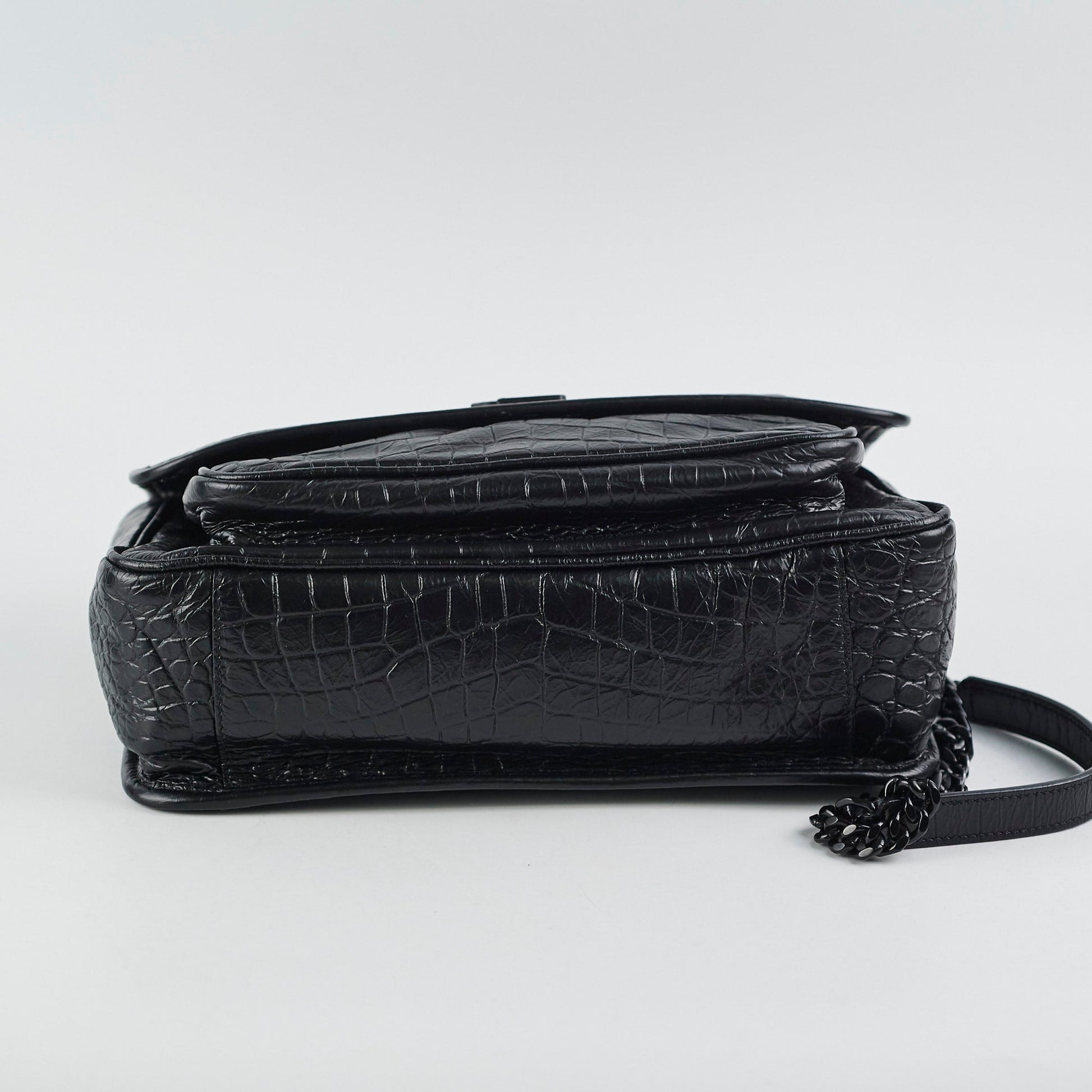 Saint Laurent Black Niki Medium In Crocodile-Embossed Leather