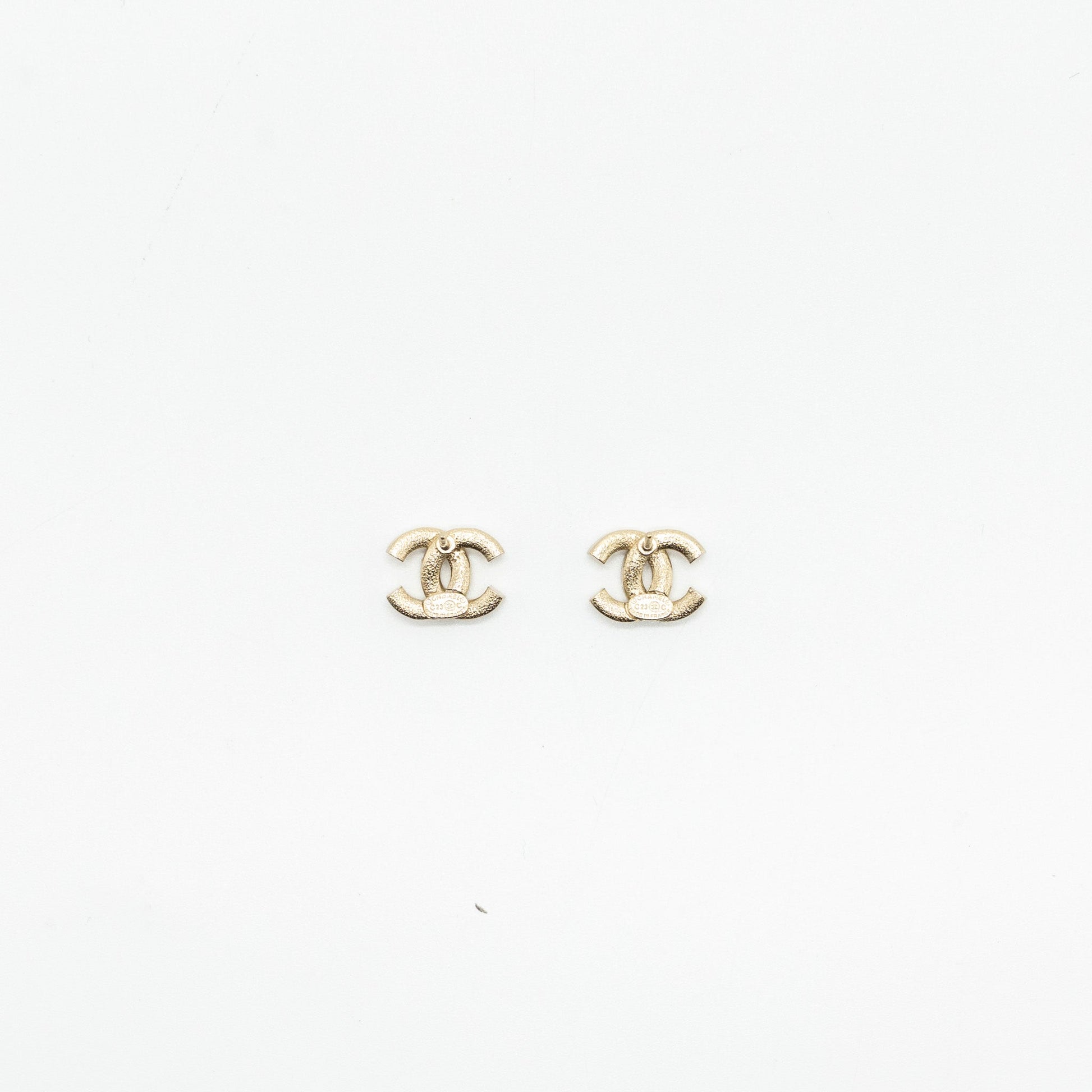 Chanel Classic CC Logo earrings Crystal Light Gold Tone