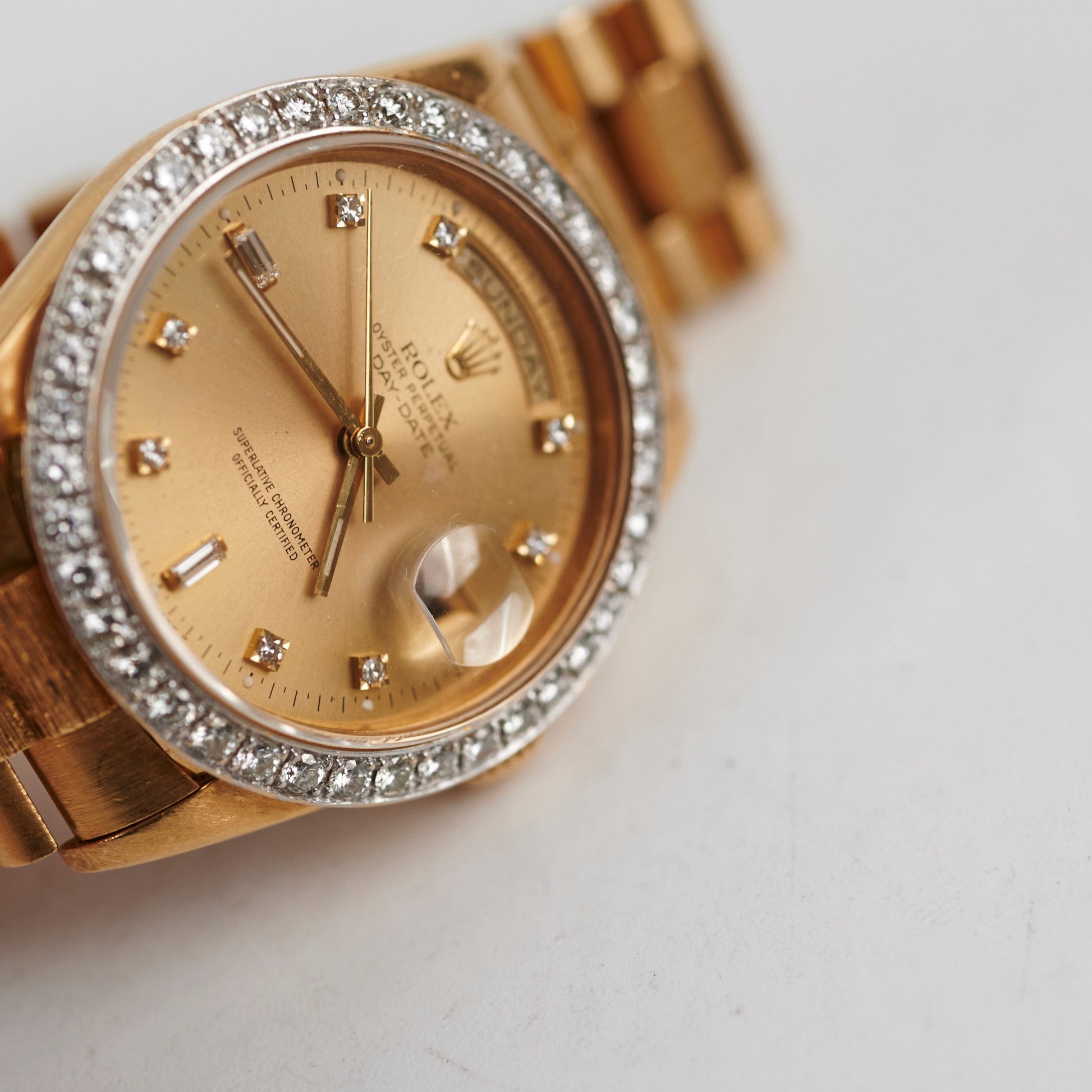 Name: | 20051 Rolex 36mm President 18k Yellow Gold with Aftermarket Diamonds Watch |
