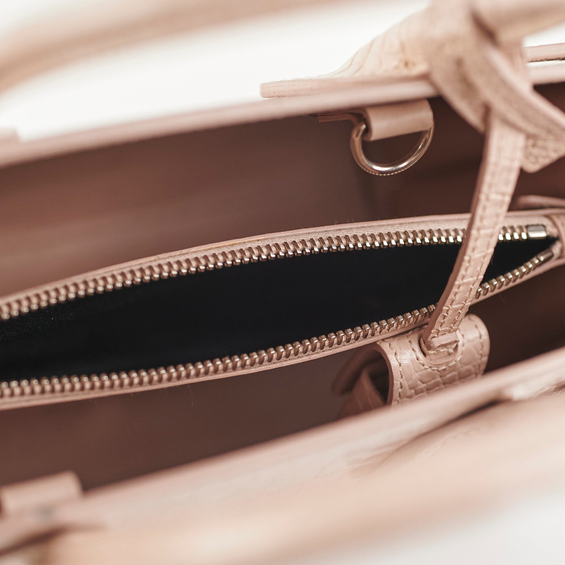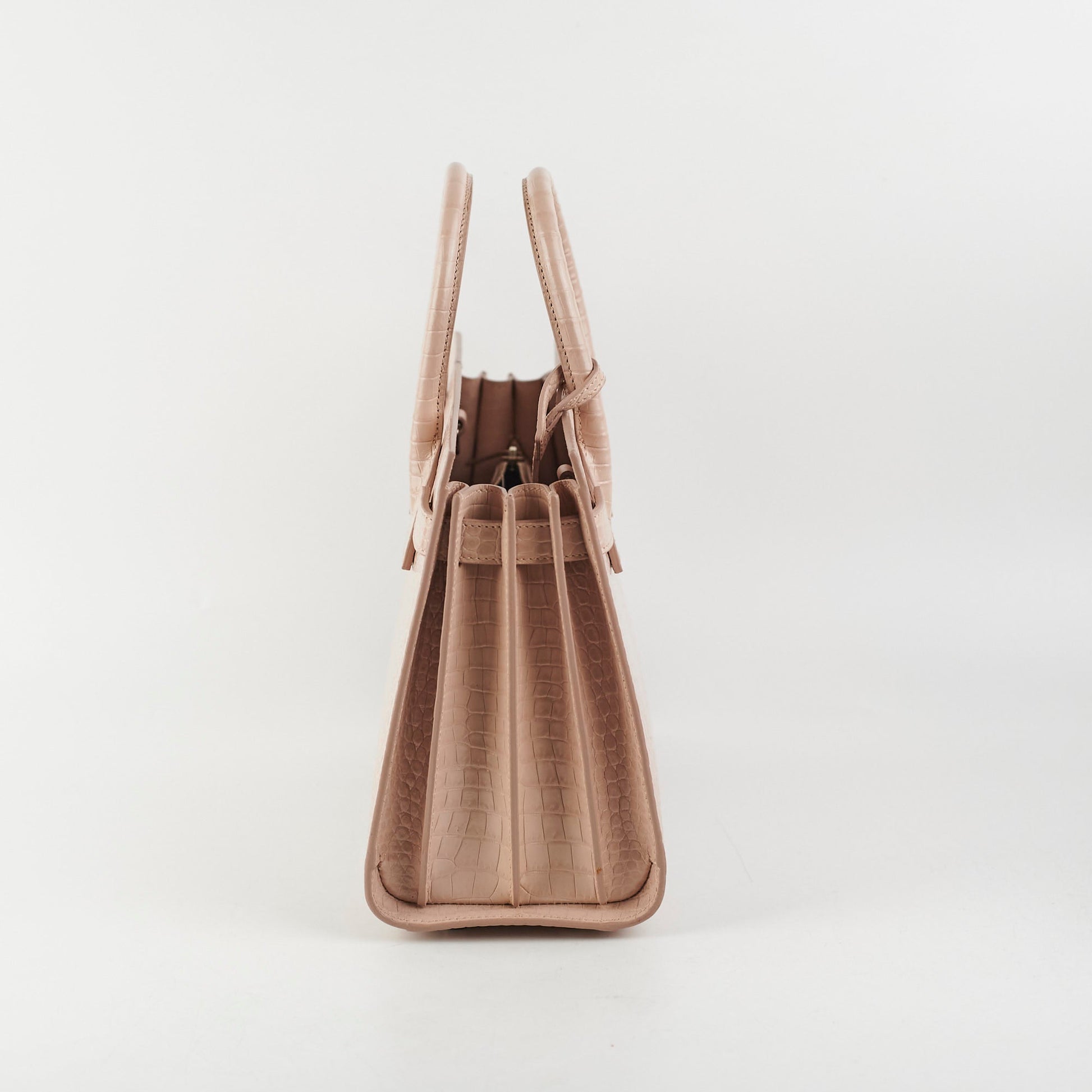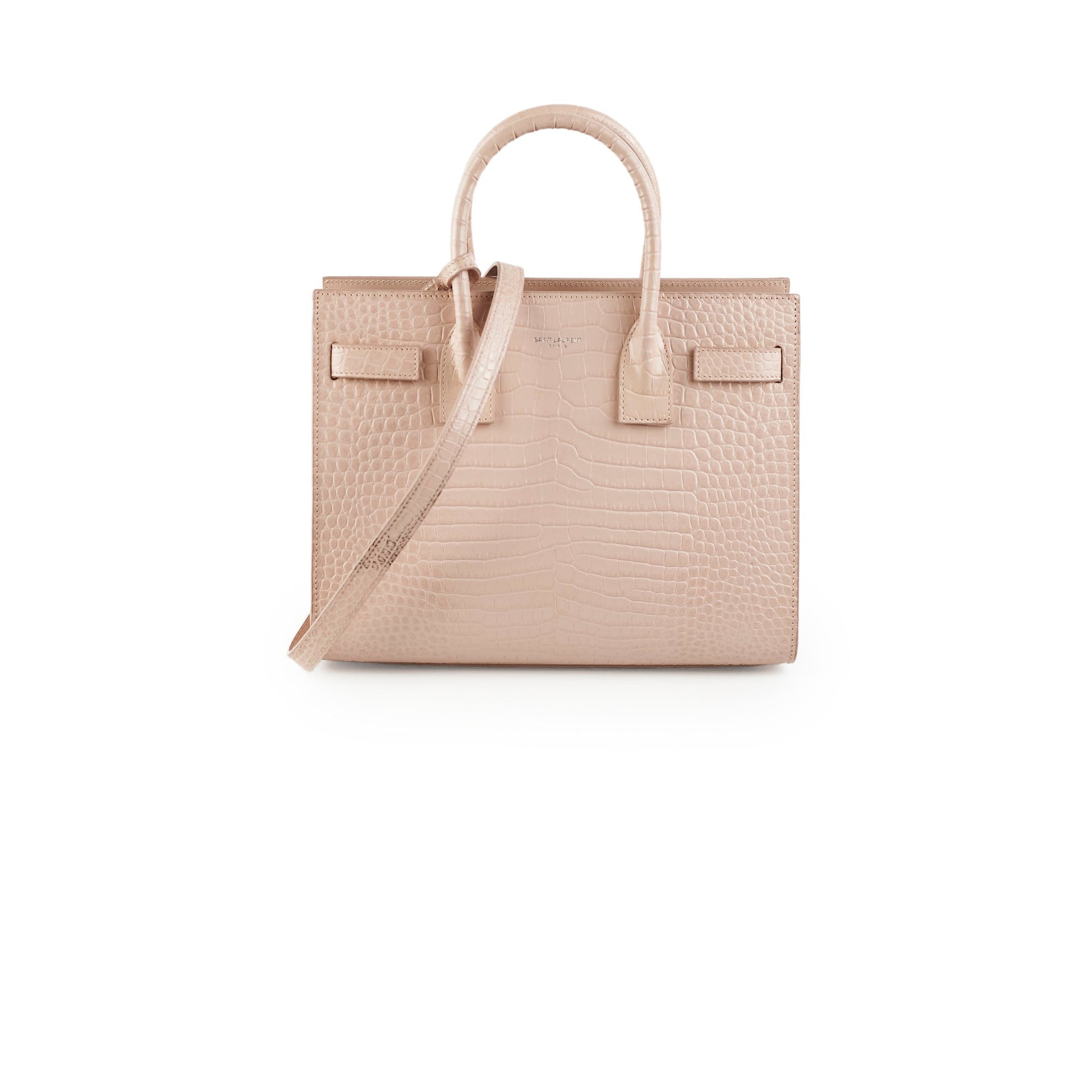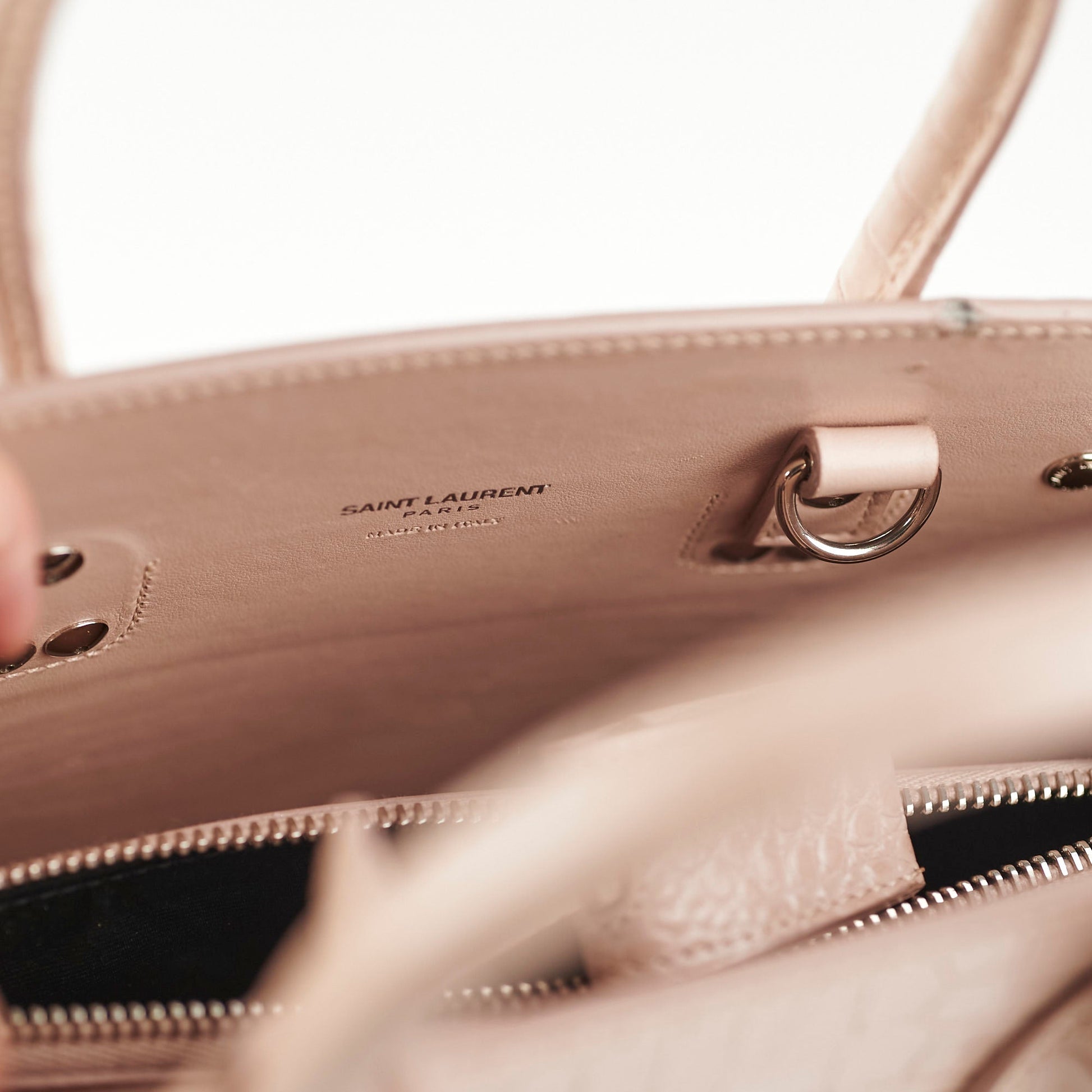 Saint Laurent Croc Embossed Sac De Jour Blush Pink
