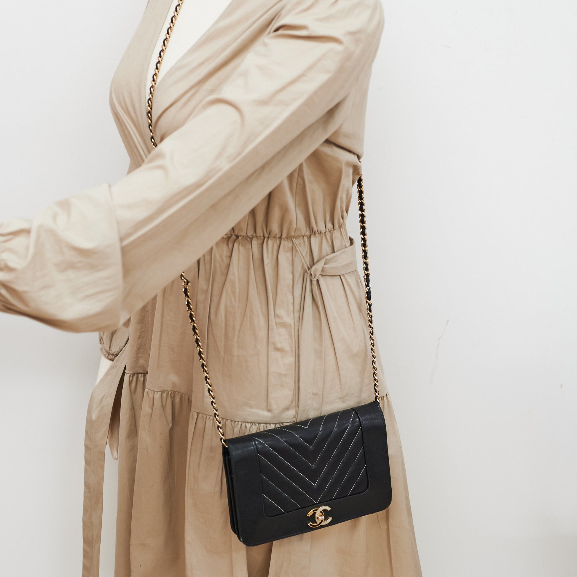 2/7 DOTD- Chanel Chevron Wallet on Chain (WOC) Lambskin Black
