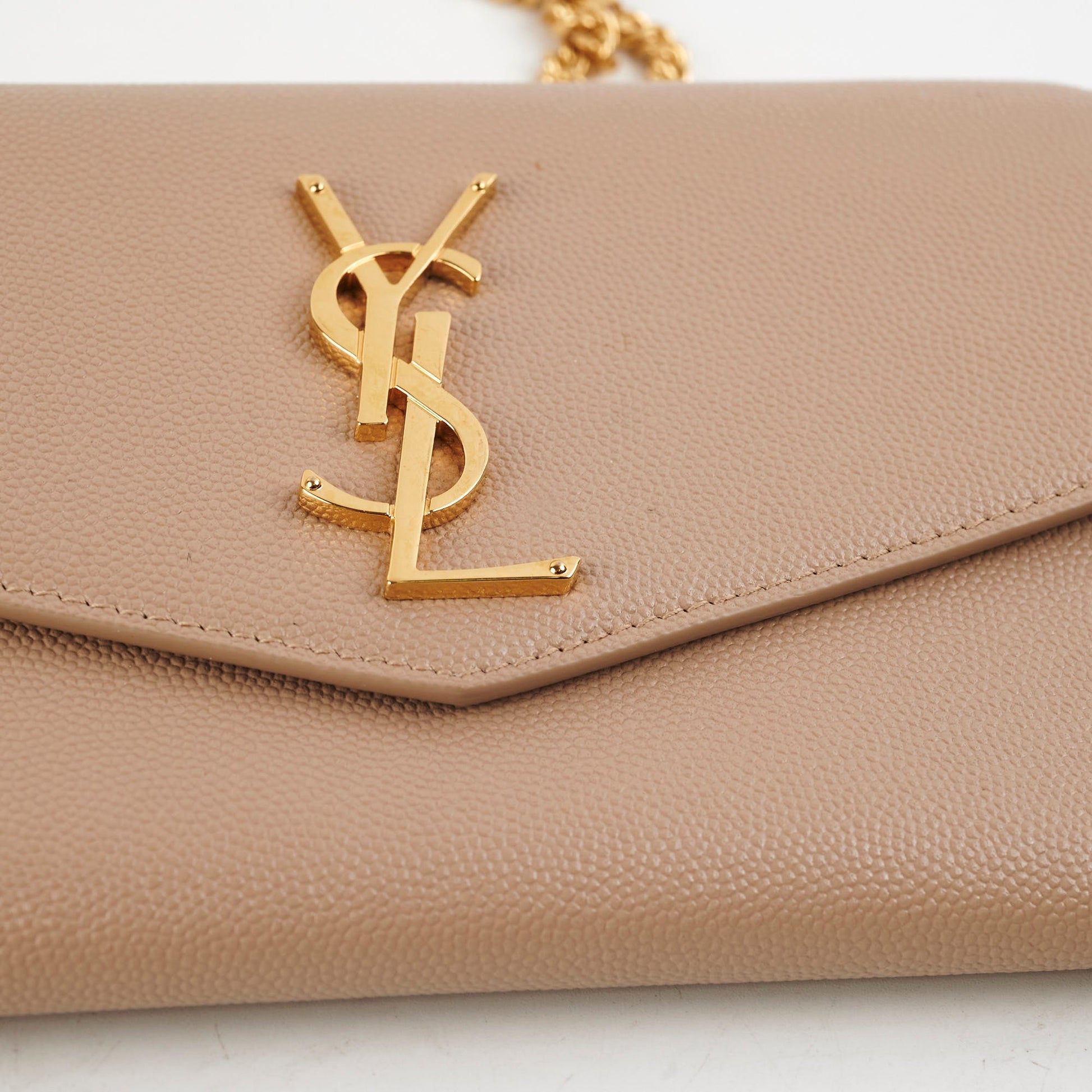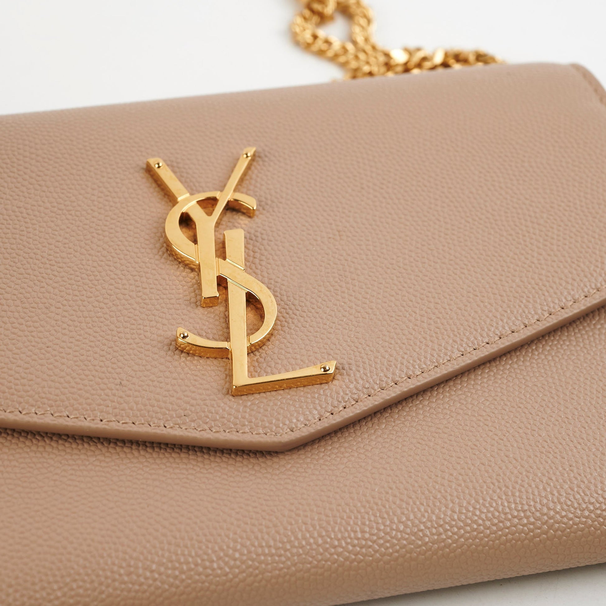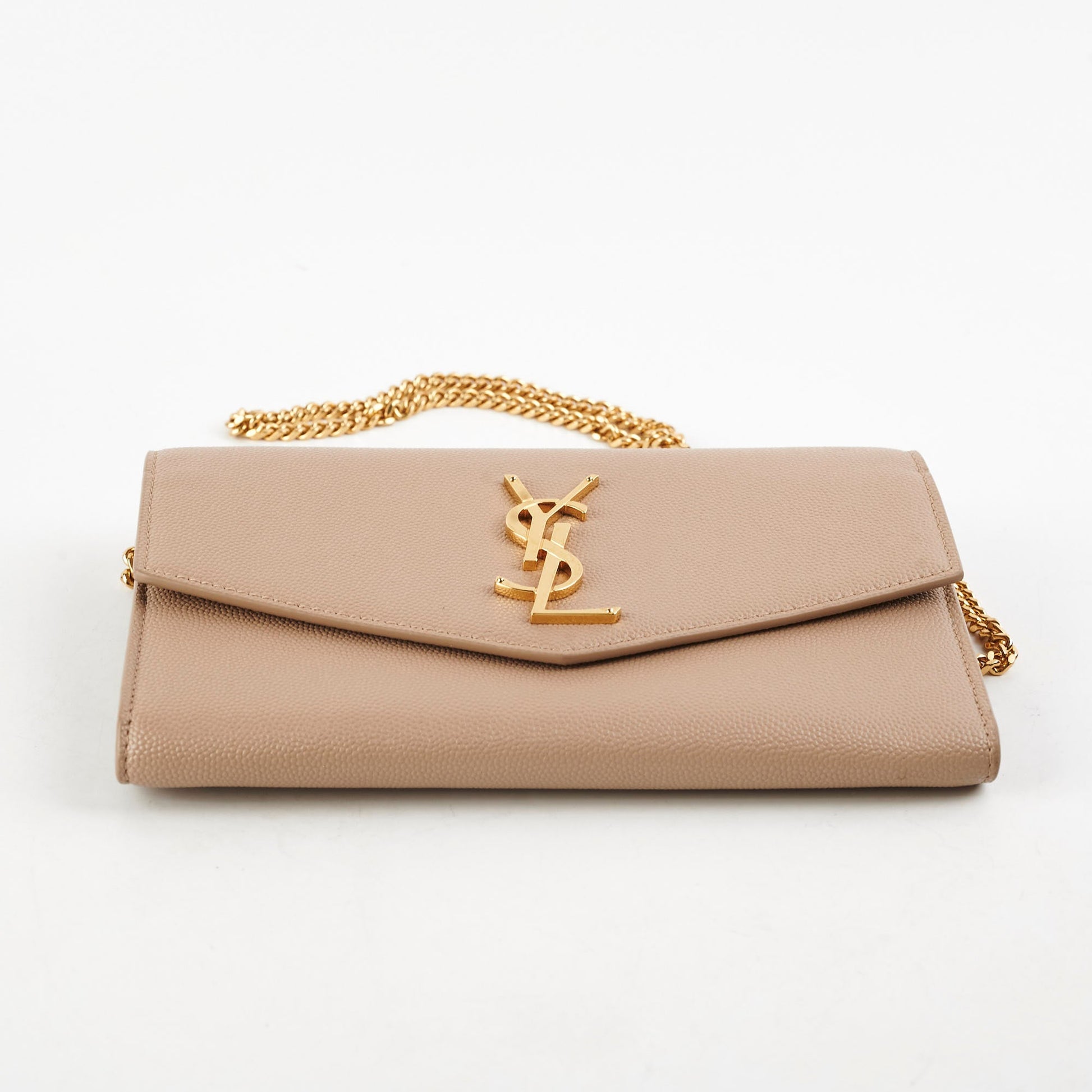 Saint Laurent Uptown Pouch in Grain with Chain Beige