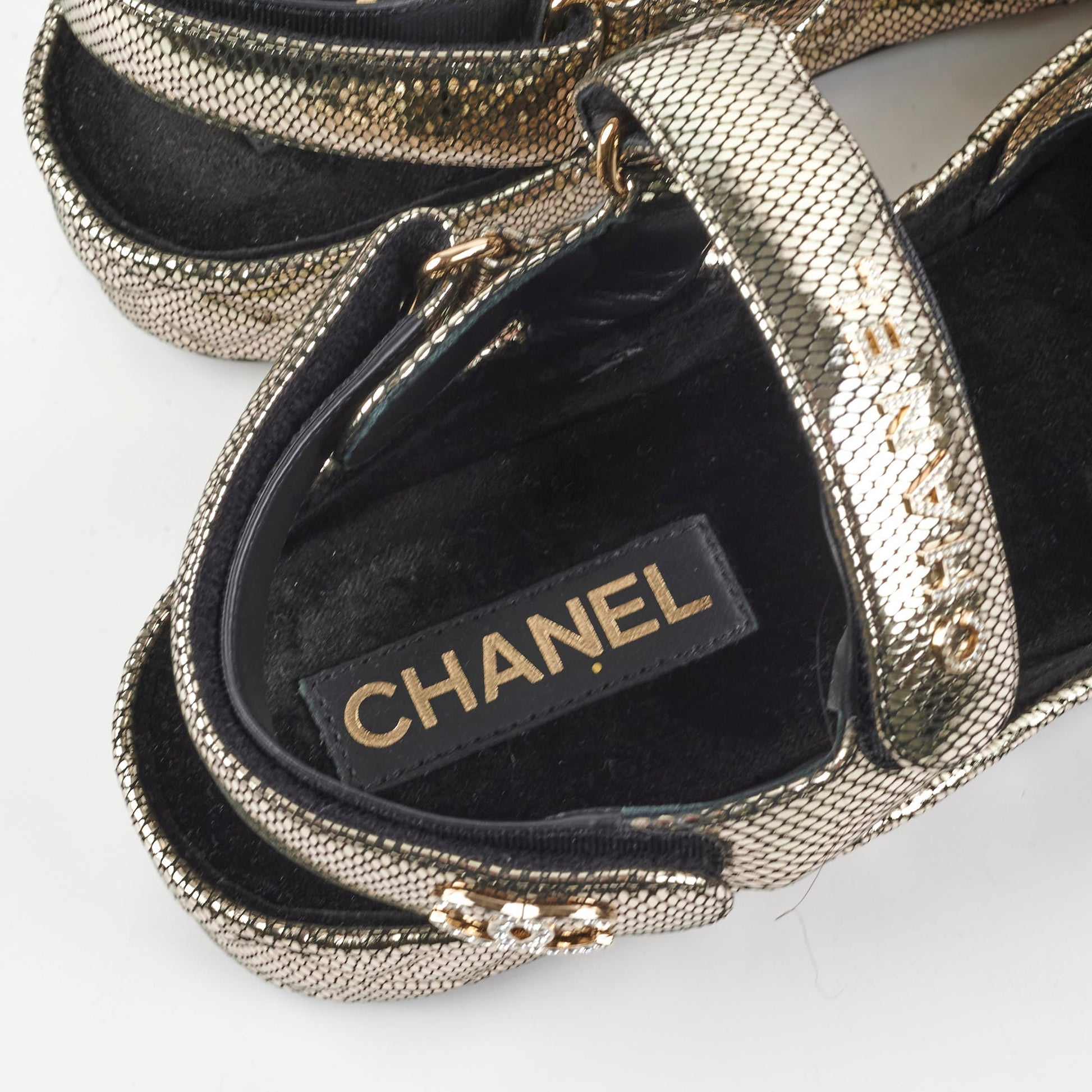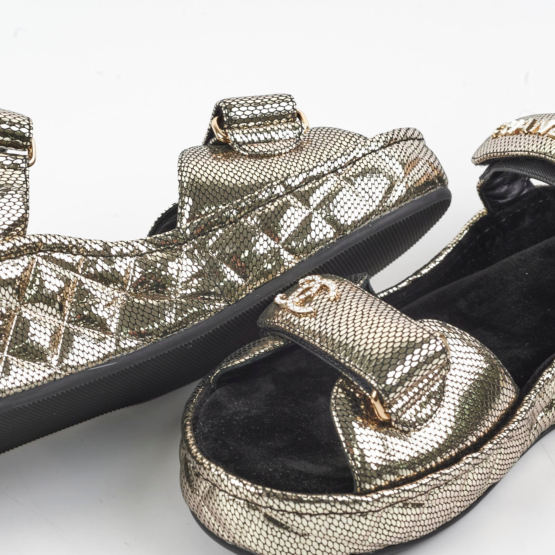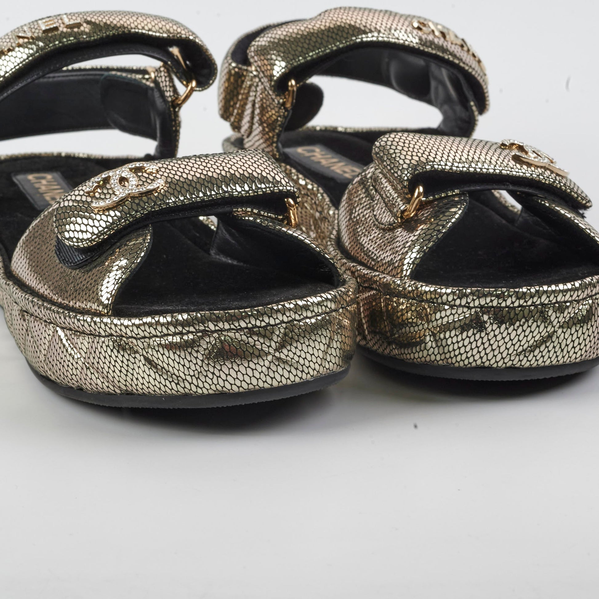 Name: | 22020 Chanel Leather Gold Dad Sandals Size 40 |
