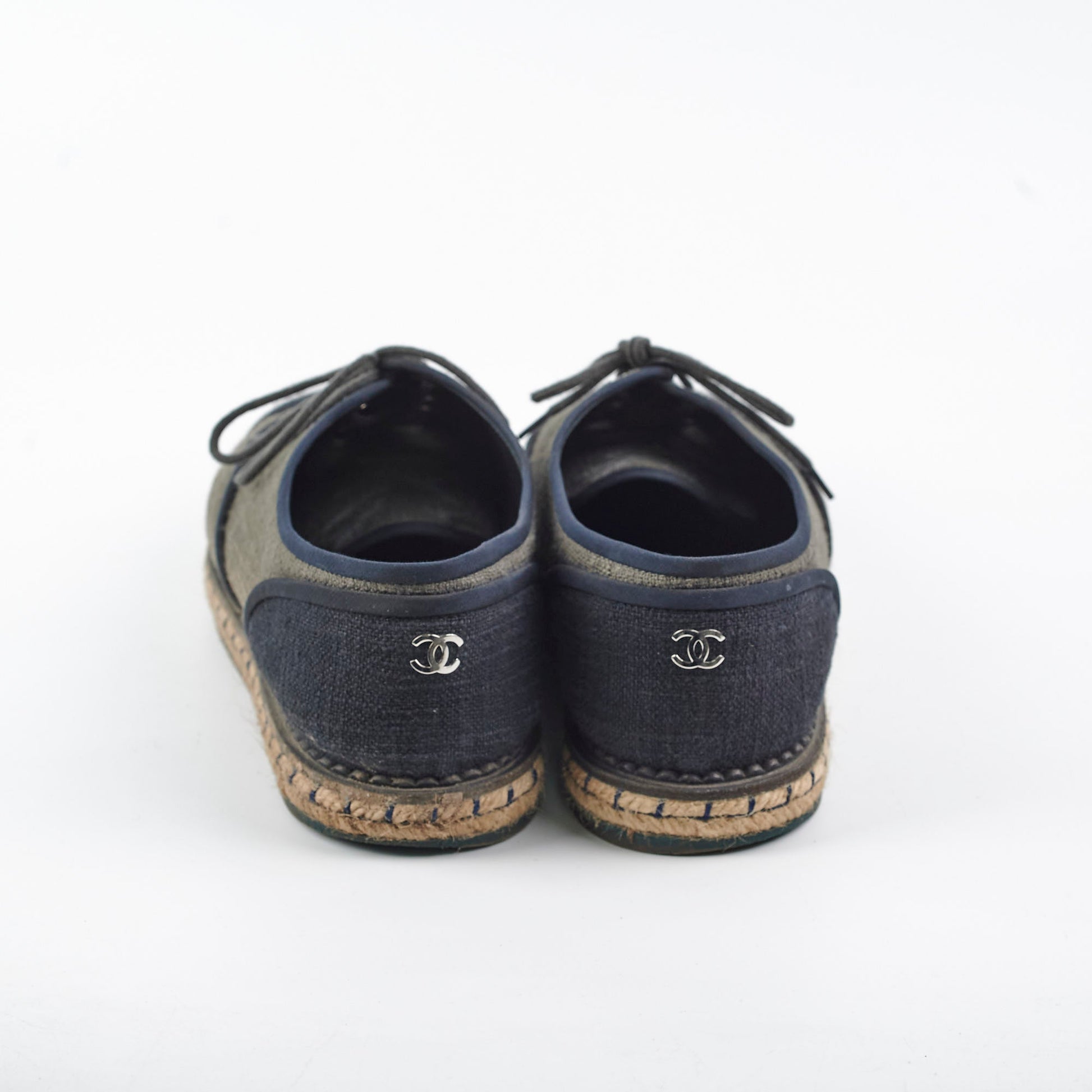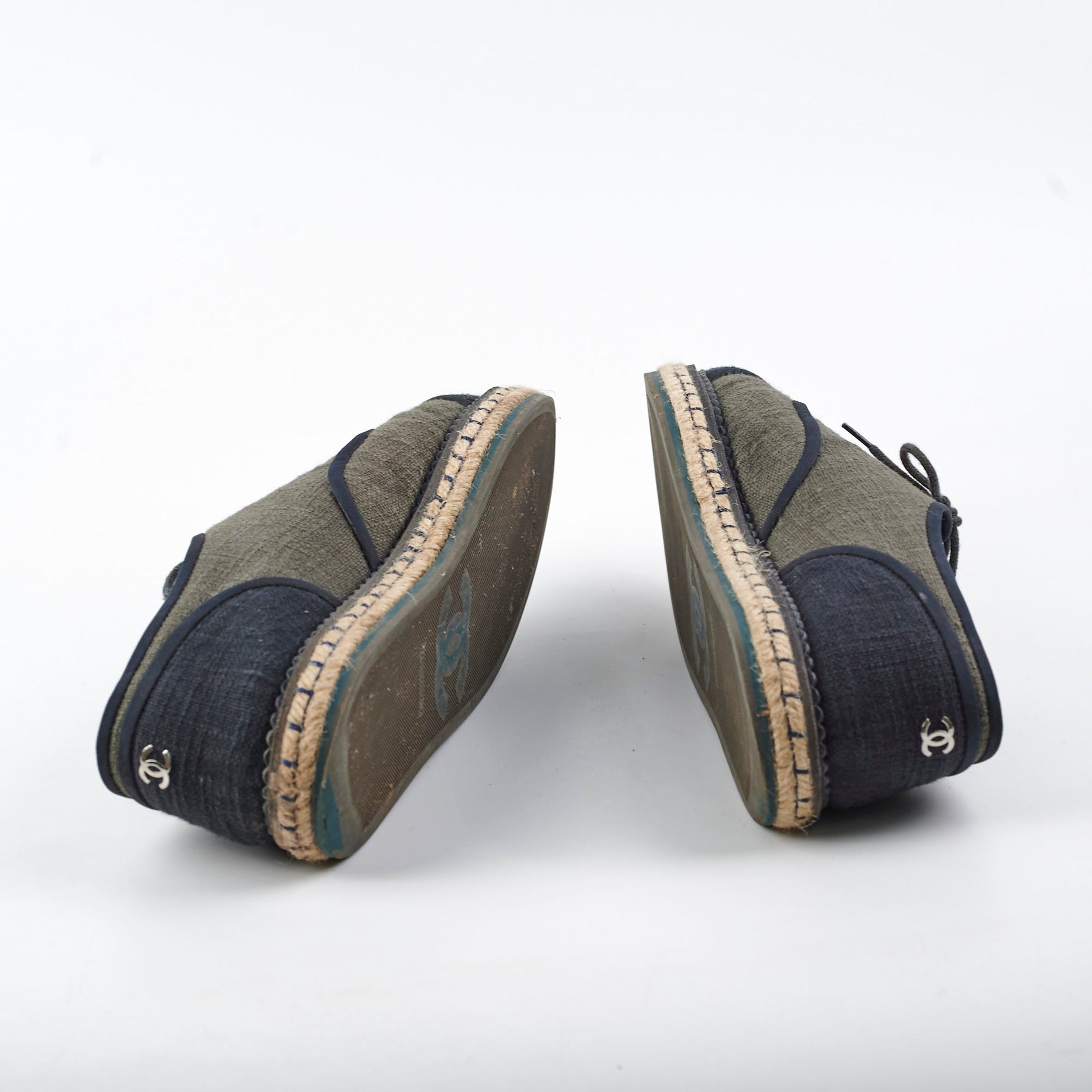Chanel Espadrilles Lace Up Shoes Dark Green Size 41