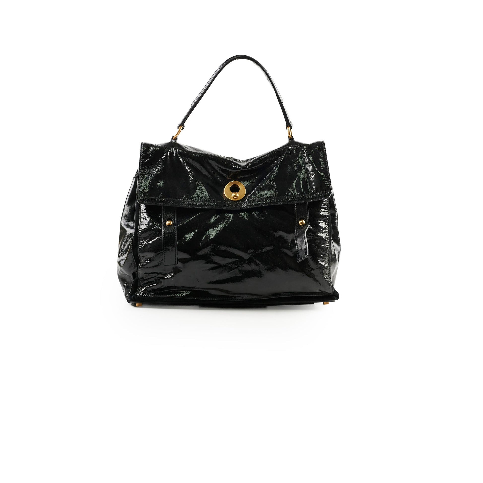 | Name: | Saint Laurent Black Large Patent/Suede Top Handle Bag |