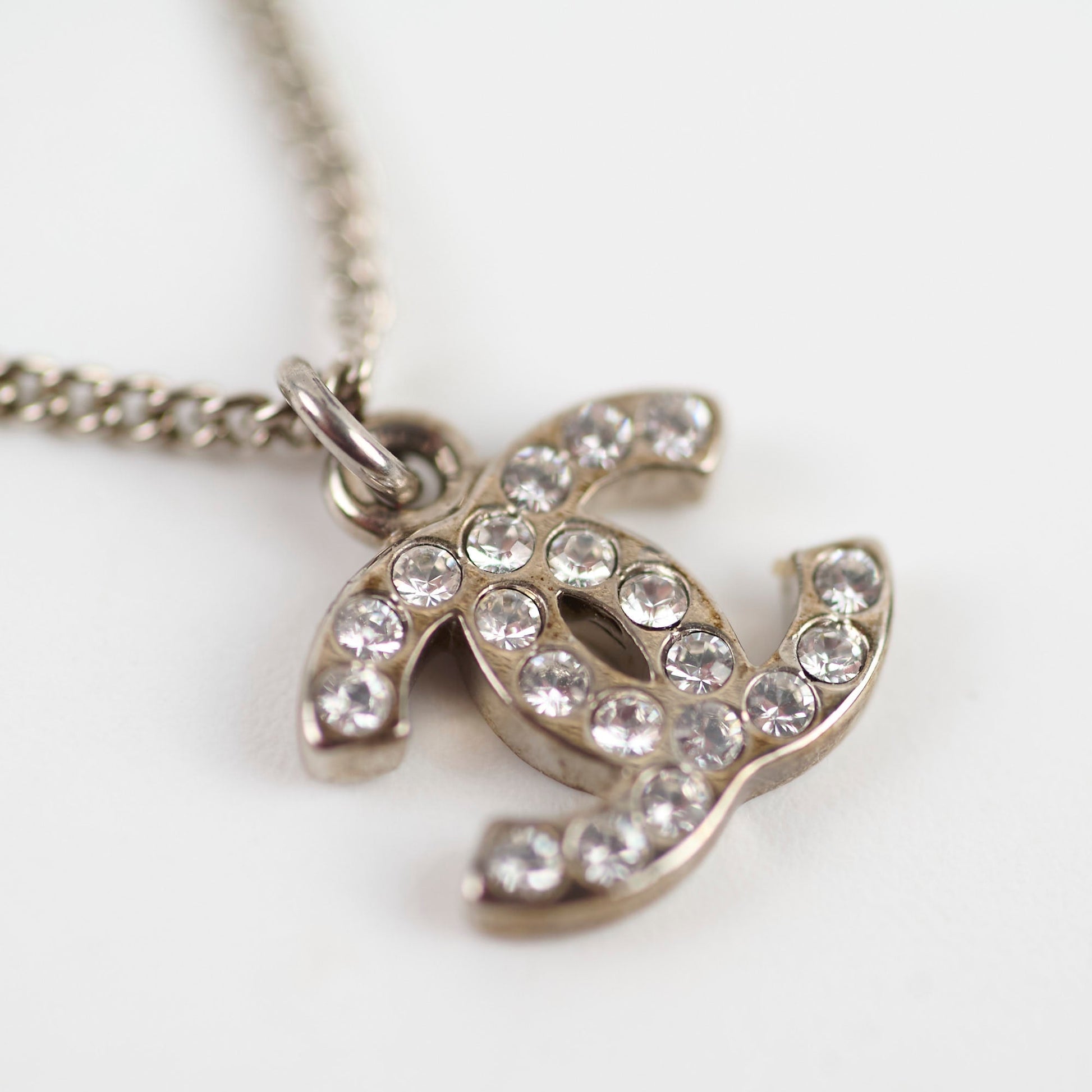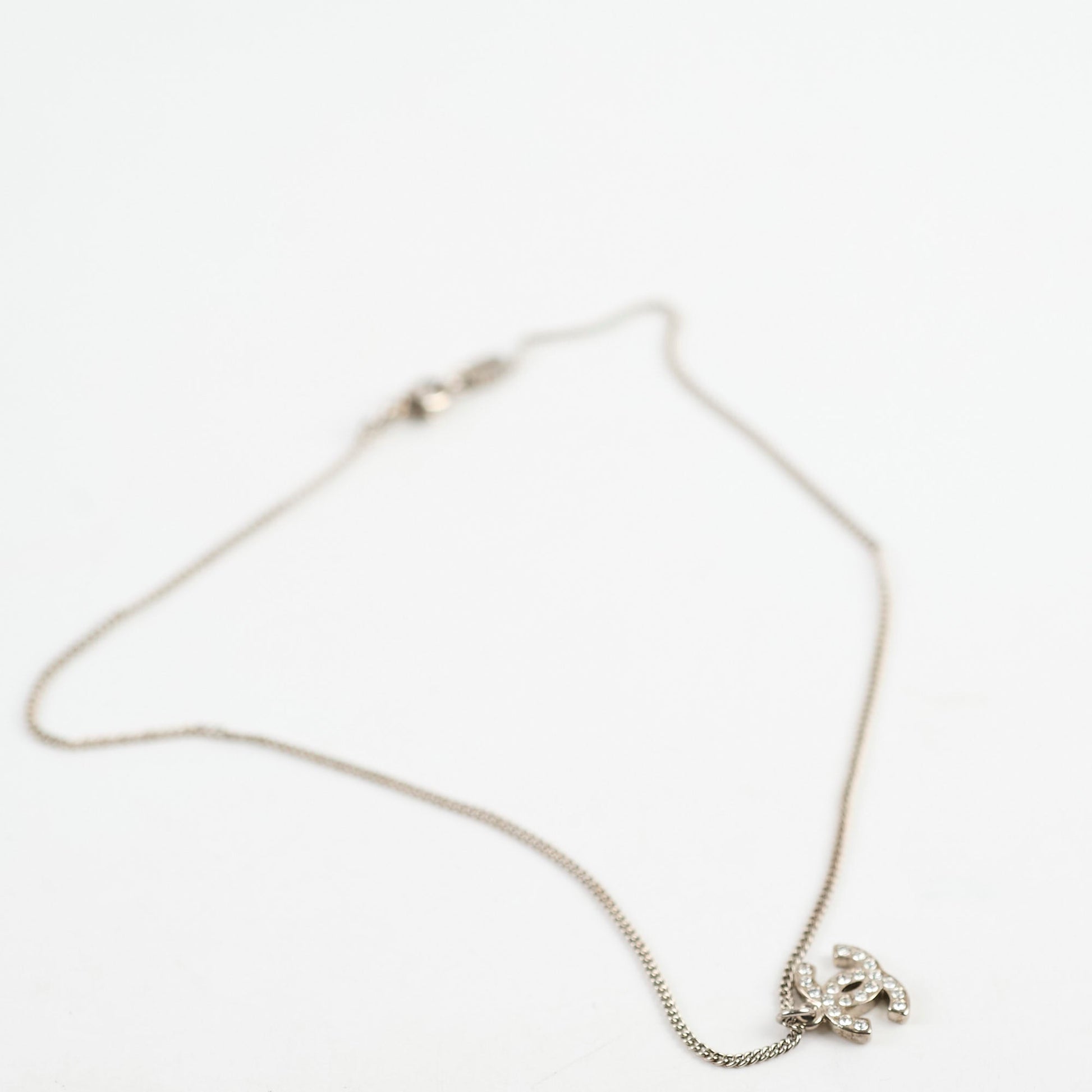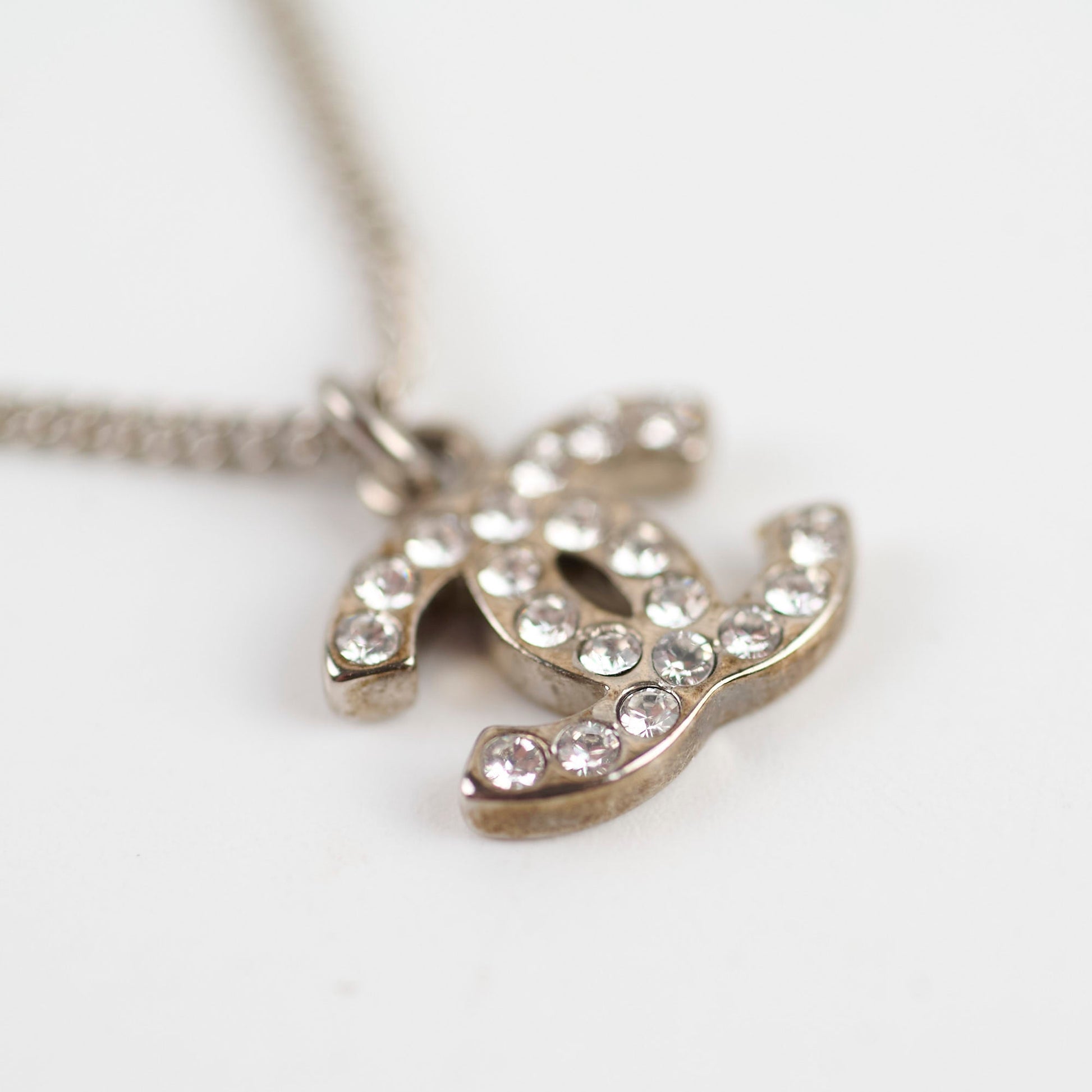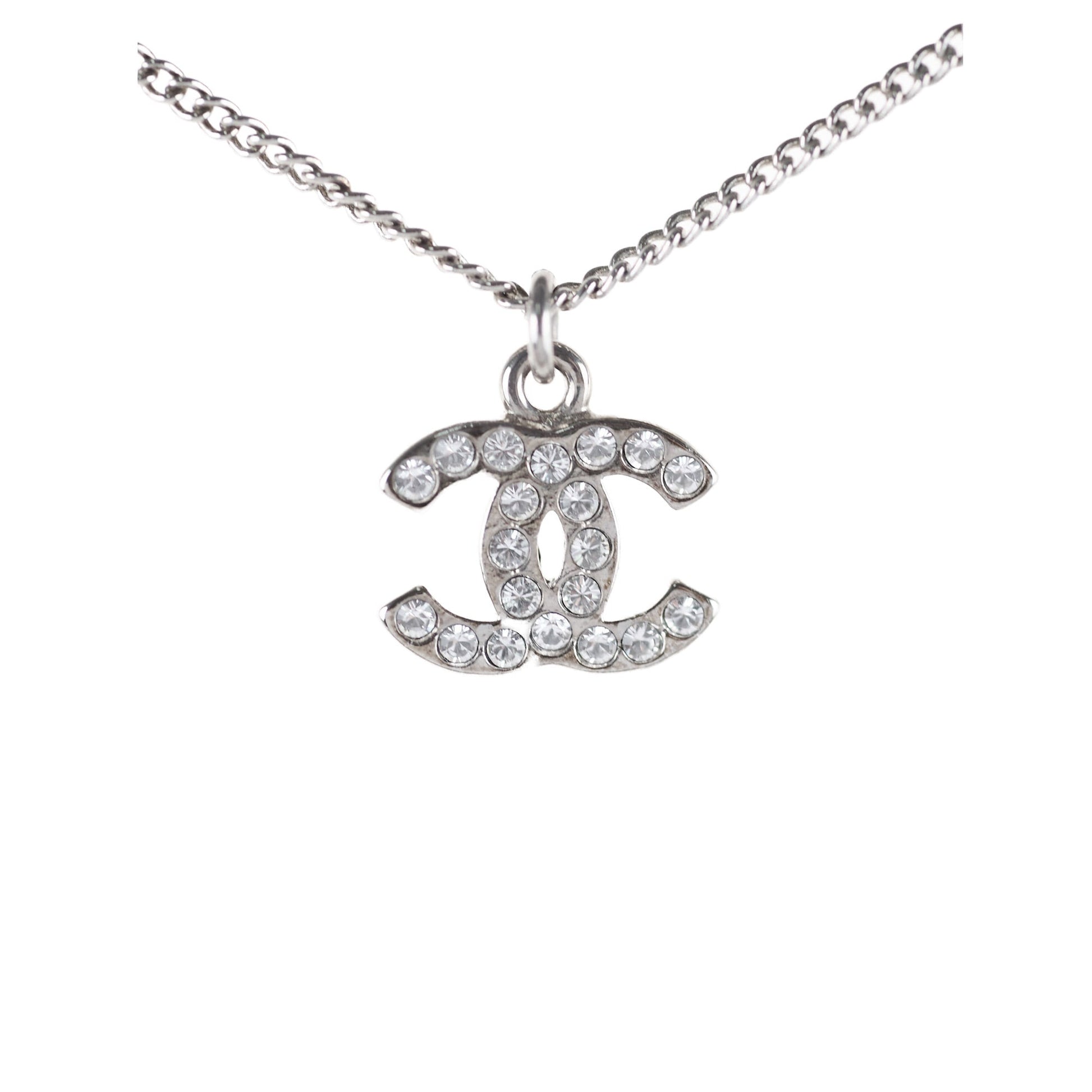 Chanel CC Logo Rhinestone Silver Necklace Costume Jewellery