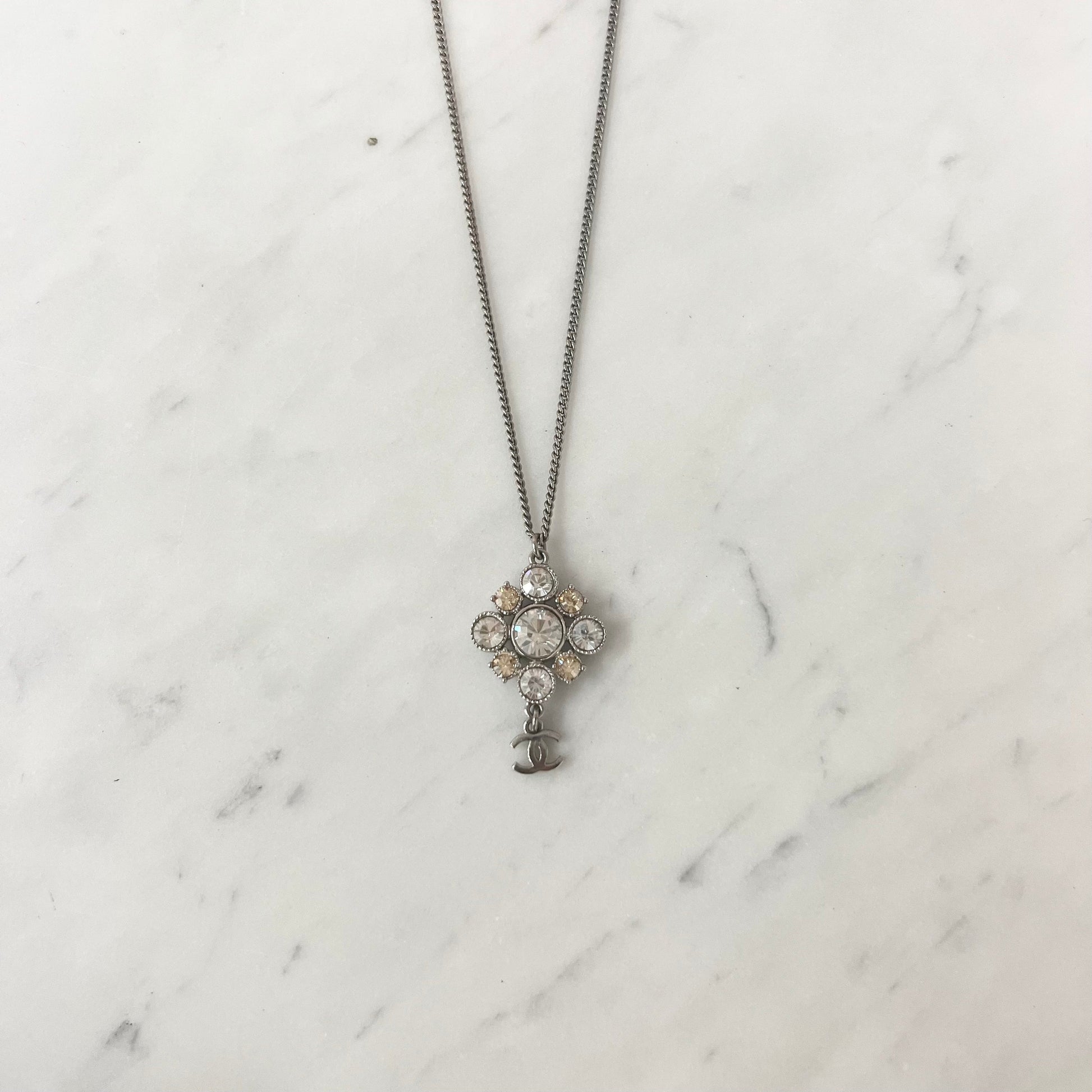 Chanel Crystal CC Logo Pendant Necklace Costume Jewellery